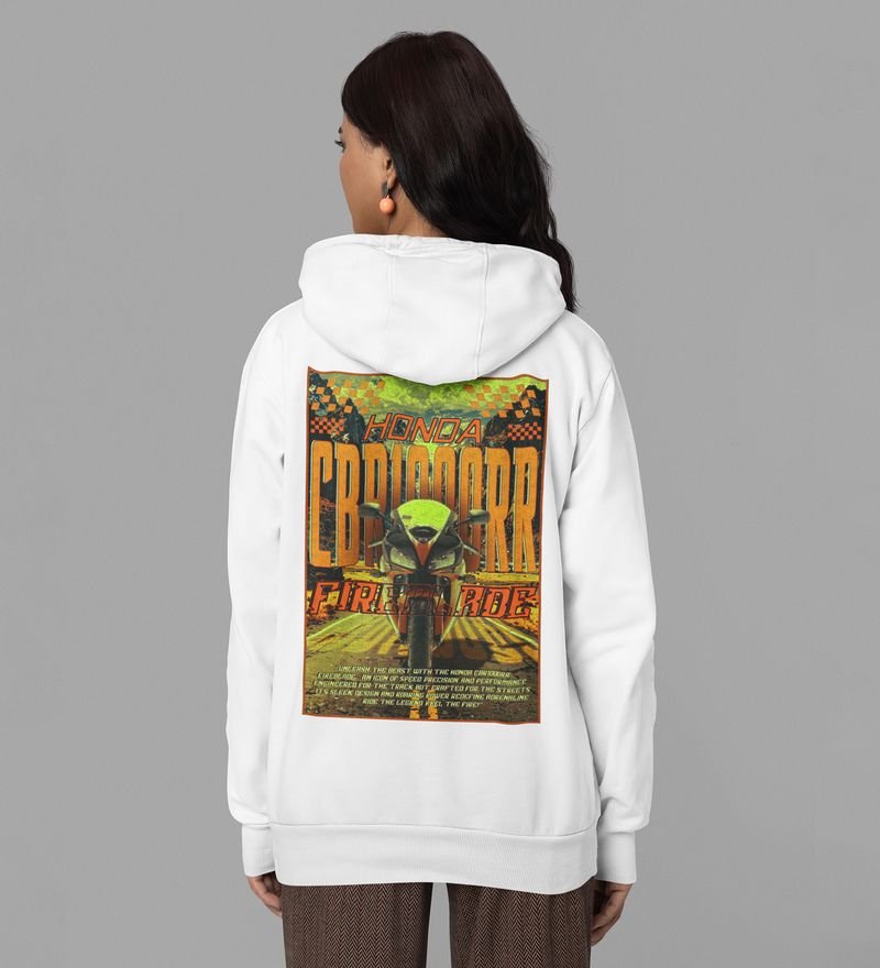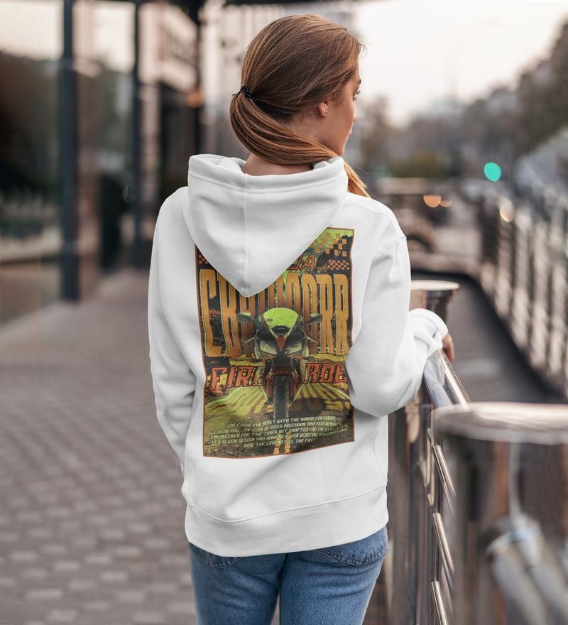 Ride with the Best Performance Sports Bike Printed White Hoodie for Women