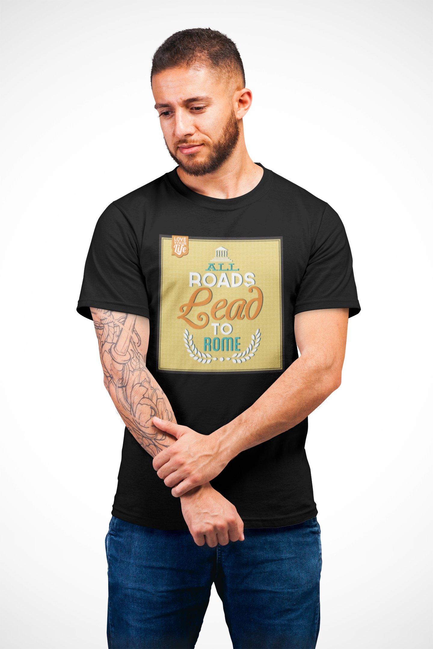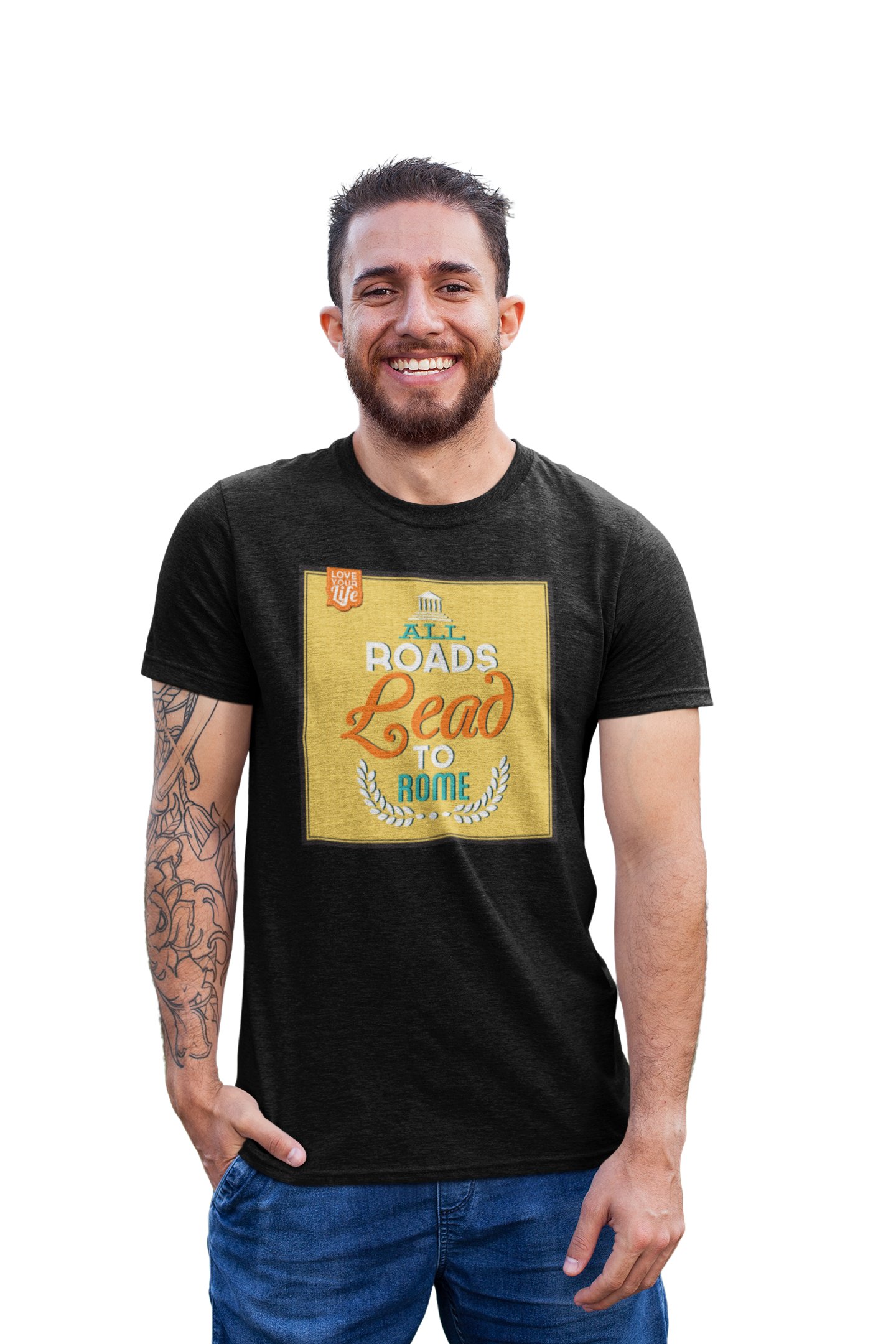 All roads lead to rome (yellow) -round crew neck cotton tshirts for men