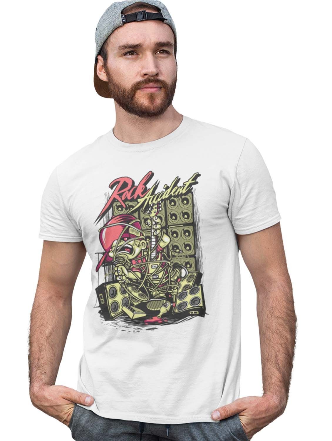 Rock Accident White Round Neck Cotton Half Sleeved T-Shirt with Printed Graphics