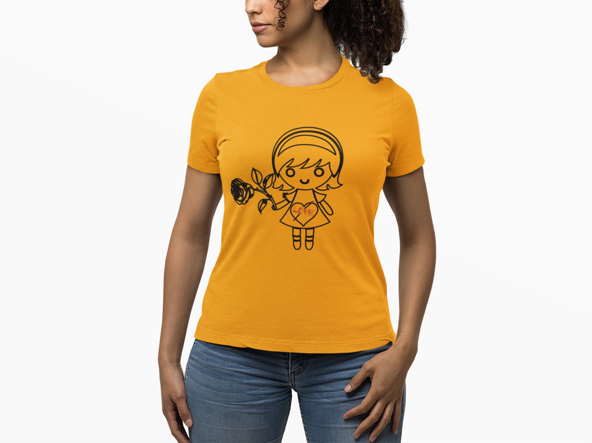 Rose Girl - Line Art for Female - Half Sleeves T-shirt