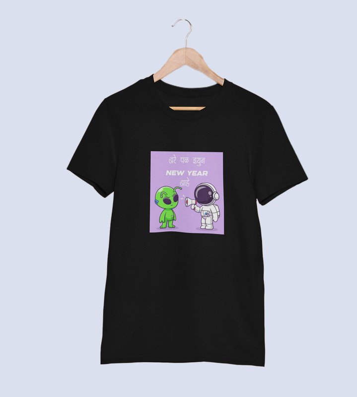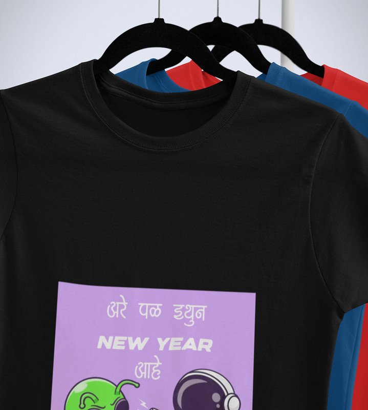 Run Away From Here Black New Year Printed T-shirt For Mens
