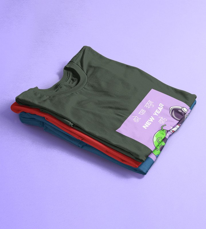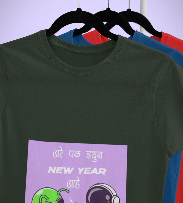 Run Away From Here Green New Year Printed T-shirt For Mens