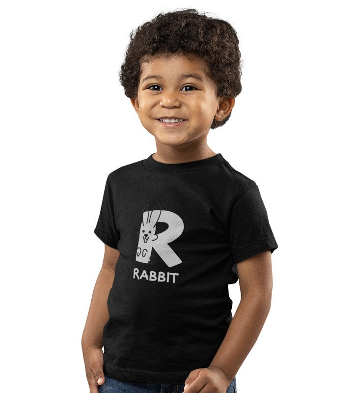 Running Rabit, Printed Cotton Tshirt (Black) for Boys