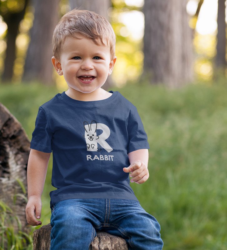 Running Rabit, Printed Cotton tshirt (Navy blue) for Boys