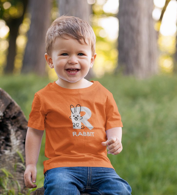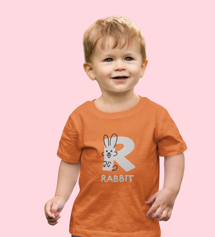 Running Rabit, Printed Cotton Tshirt (orange) for Boys