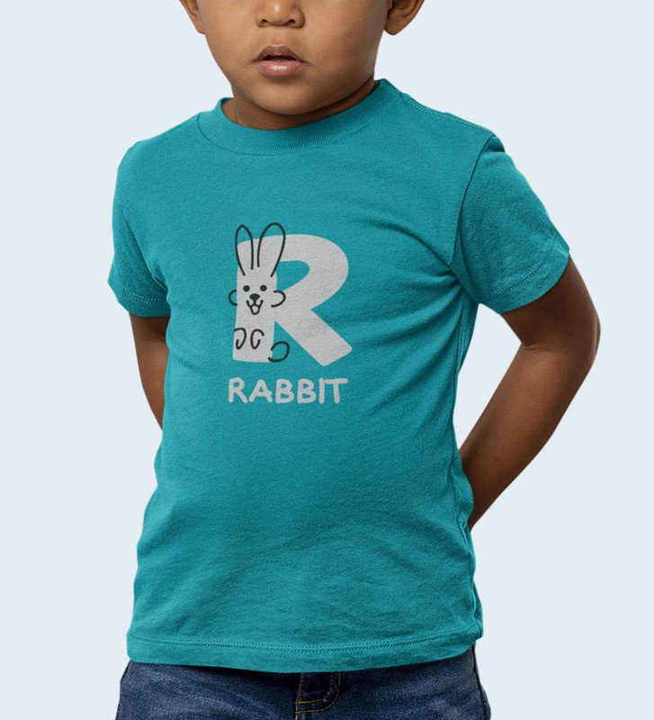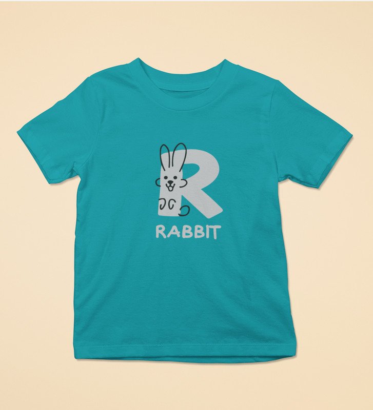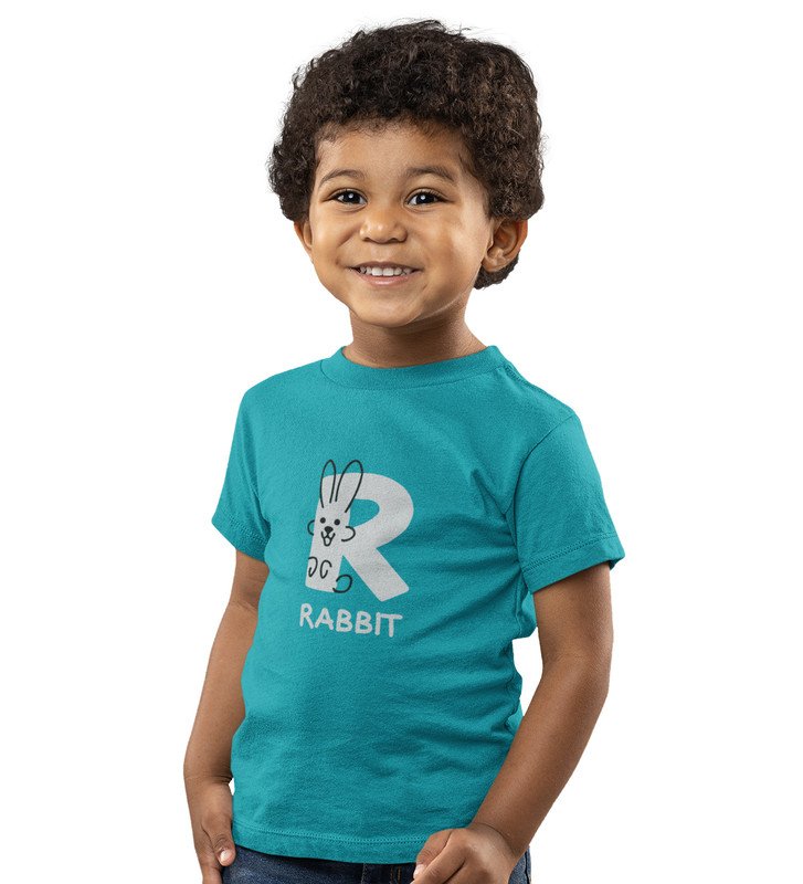 Running Rabit, Printed Cotton Tshirt (Teal) for Boys
