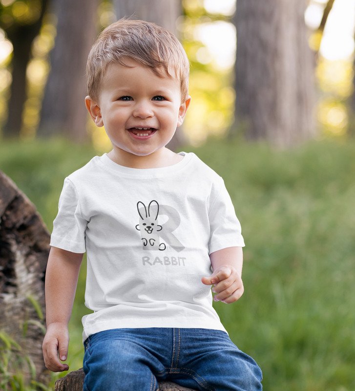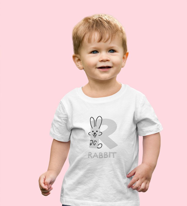 Running Rabit, Printed Cotton tshirt (white) for Boys