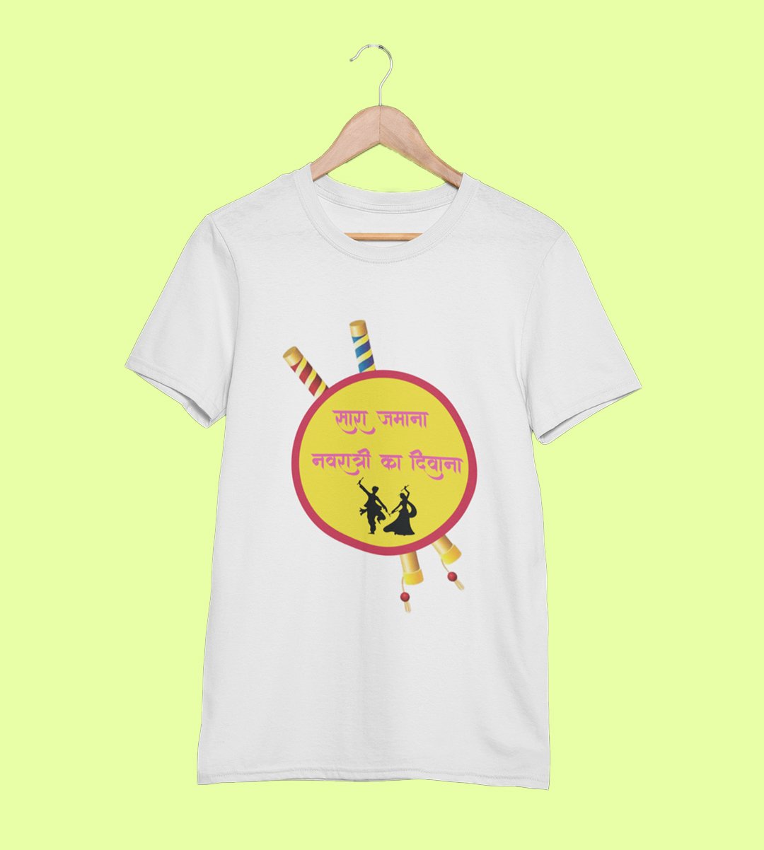 Navratri is a very auspicious festival for hindus. It takes place at the beginning of October and sometimes September. Enjoy the 9 days of festivities with full zeal and make yourself submerged in the love of Maa Durga. Navratri is also known as Durga Puja. And with this Tees, you can shine like a star during this festive season with our navratri themed cotton half sleeved Tshirts. You can pair our t-shirts with trousers and denim of your choice and make it a weekday smart casual or weekend wear. This is durable. This tshirt is smooth and soft which makes you comfortable to wear during all seasons. The printing in it is durable and odourless. It has five sizes, S,M,L,XL,XXL. The Tshirt colour is intact even after repeated washes. It can be kept in your wardrobe and hangers. Please avoid washing mashine to clean this Tee, it may affect the print. Hand wash only. We have brought you many navratri related designs printed on our different colour Tshirts to choose from. Grab it now.