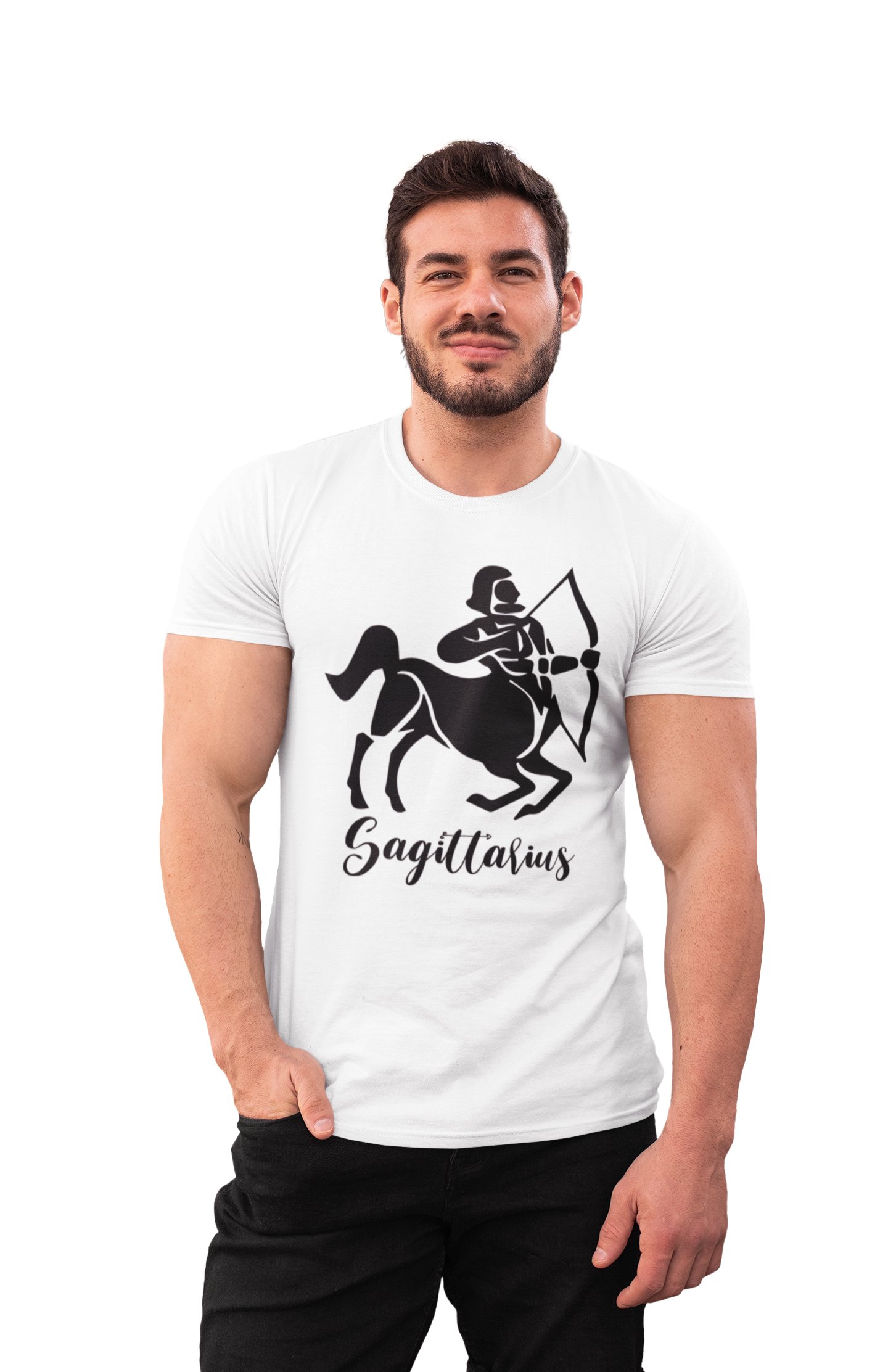 Sagittarius (BG Black) (White T) - Printed Zodiac Sign Tshirts - Made especially for astrology lovers people