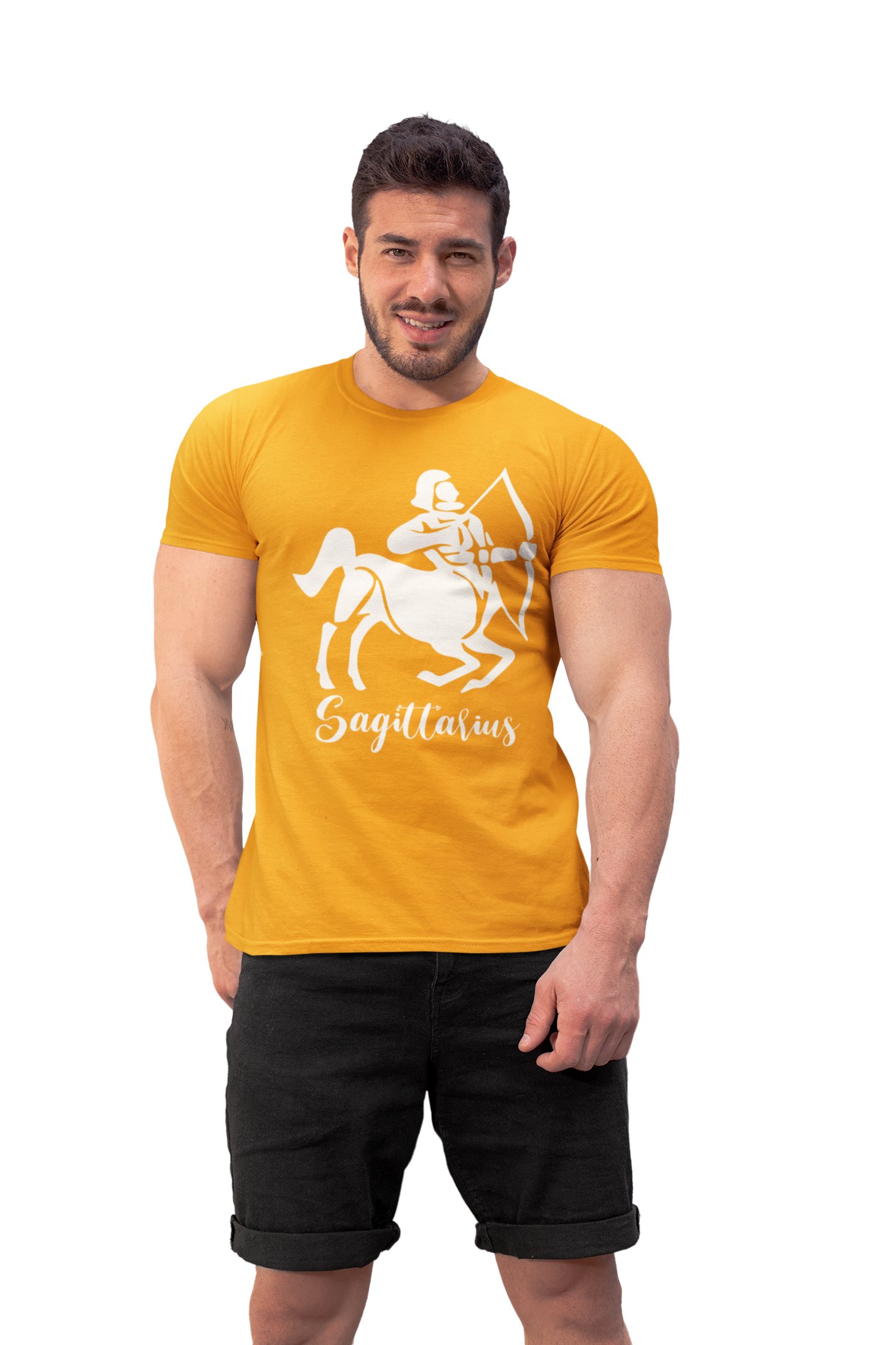 Sagittarius (BG White) (Yellow T) - Printed Zodiac Sign Tshirts - Made especially for astrology lovers people
