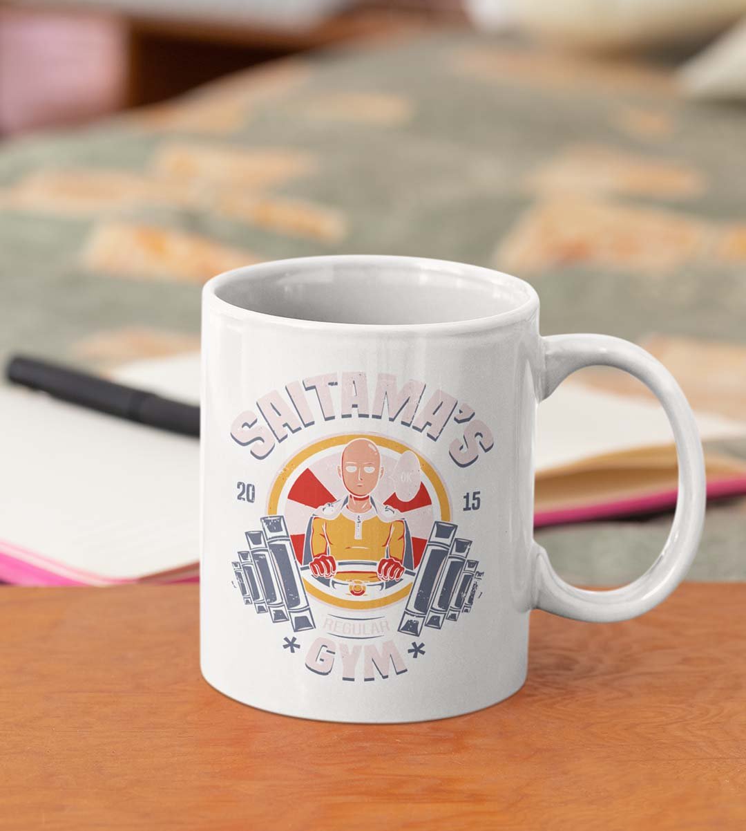 Saitama's regular gym - animation themed printed ceramic white coffee and tea mugs/ cups for animation lovers