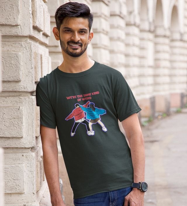 Same Kind Of Wierd Green Round Neck Cotton Half Sleeved Men T Shirt with Printed Graphics