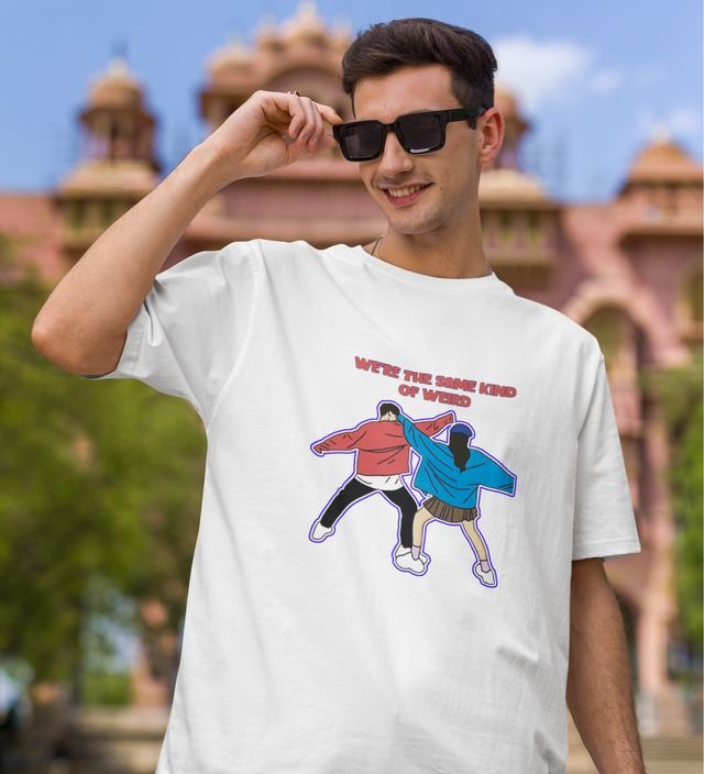 Same Kind Of Wierd White Round Neck Cotton Half Sleeved Men T Shirt with Printed Graphics