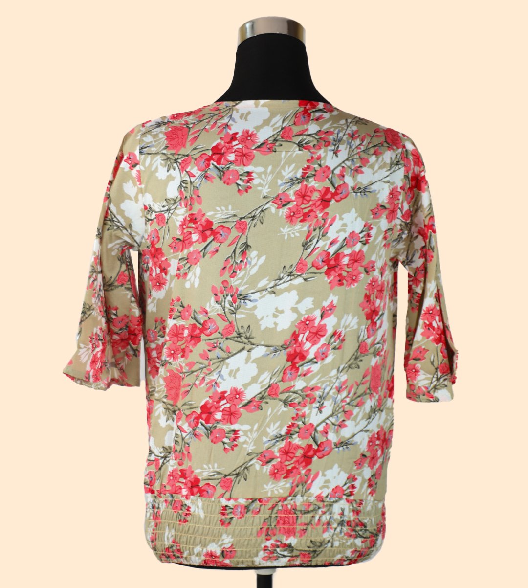 Sandy Elegance: Women's Sand Top with Red Floral Accents