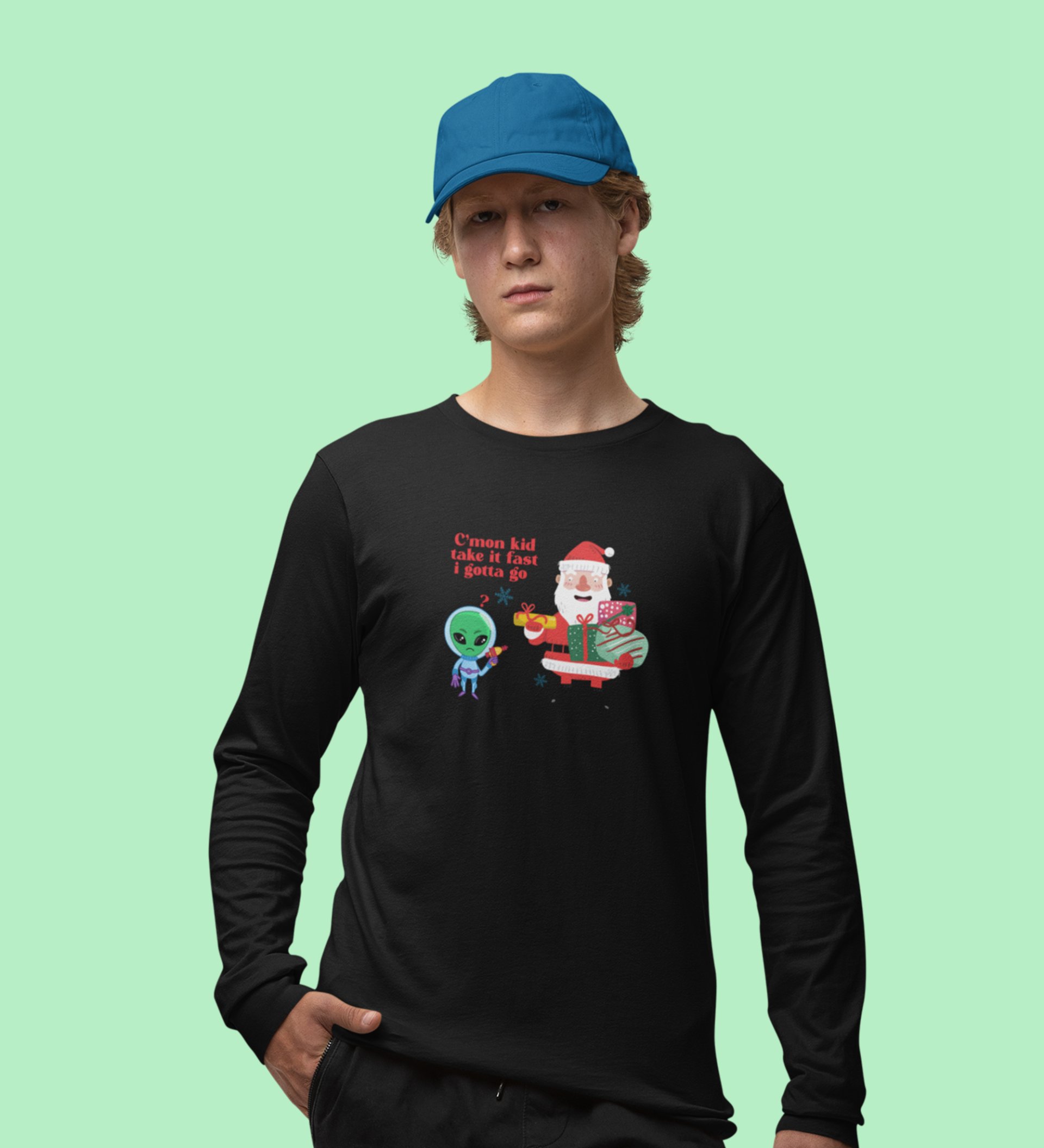Santa & Alien's Talk: Best DesignerFull Sleeve T-shirt Black Best Gift For Boys Girls