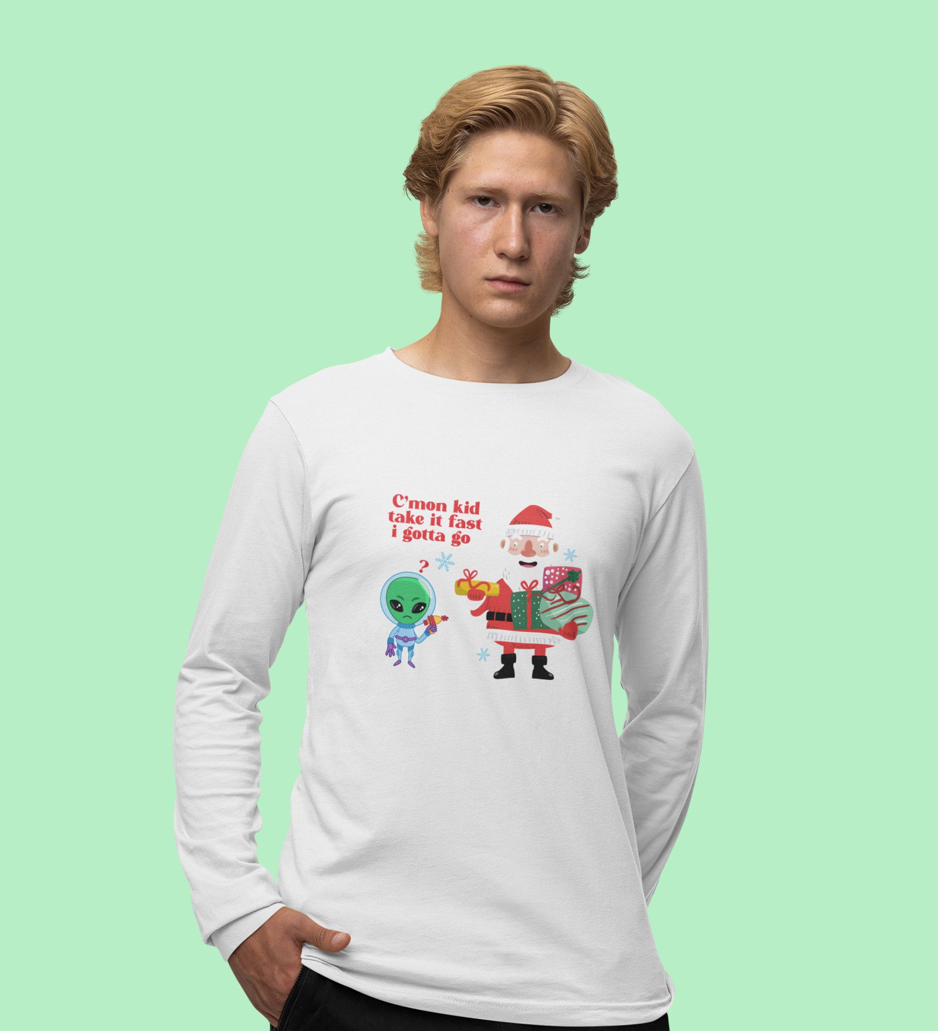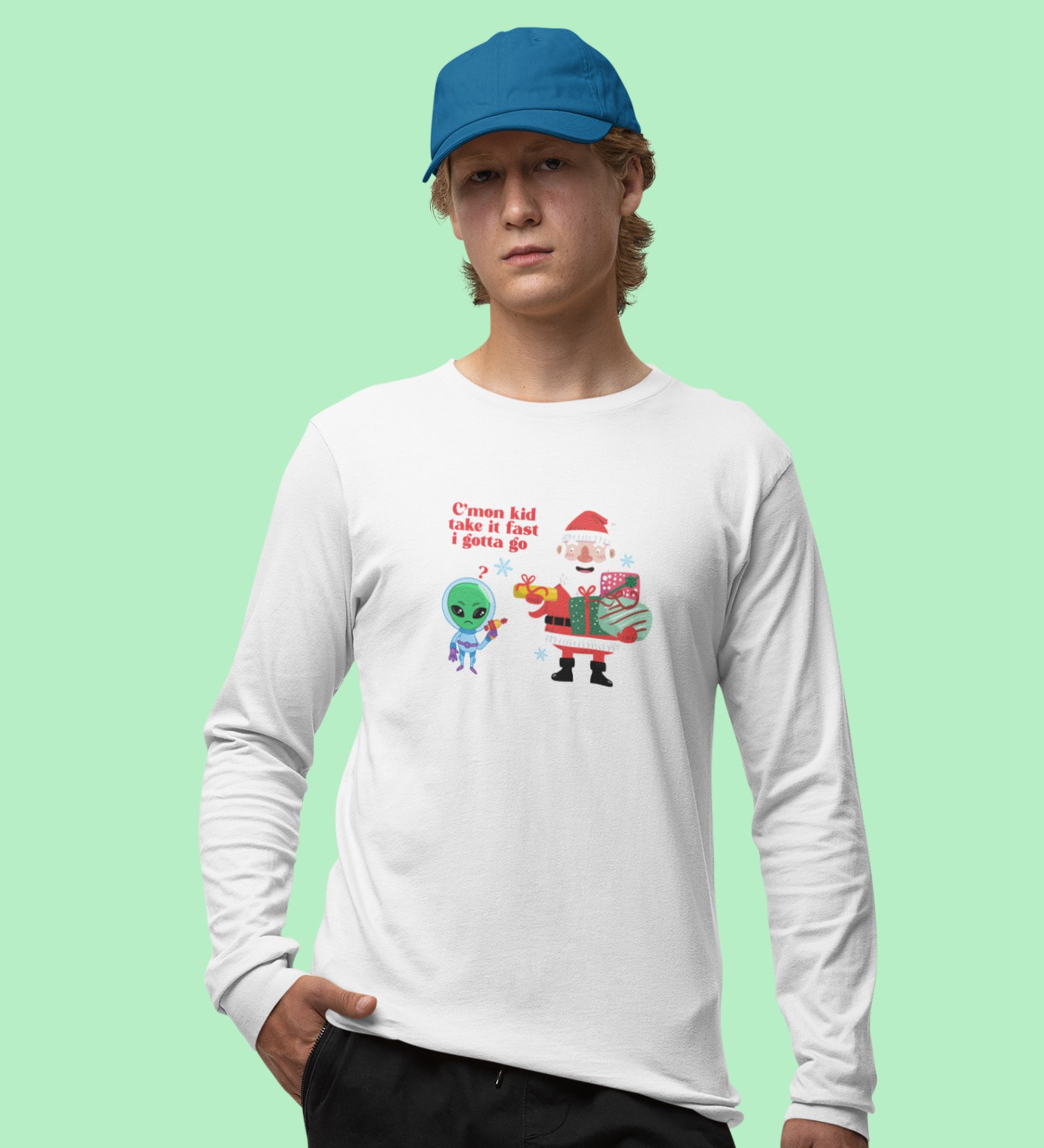 Santa & Alien's Talk: Best DesignerFull Sleeve T-shirt White Best Gift For Boys Girls
