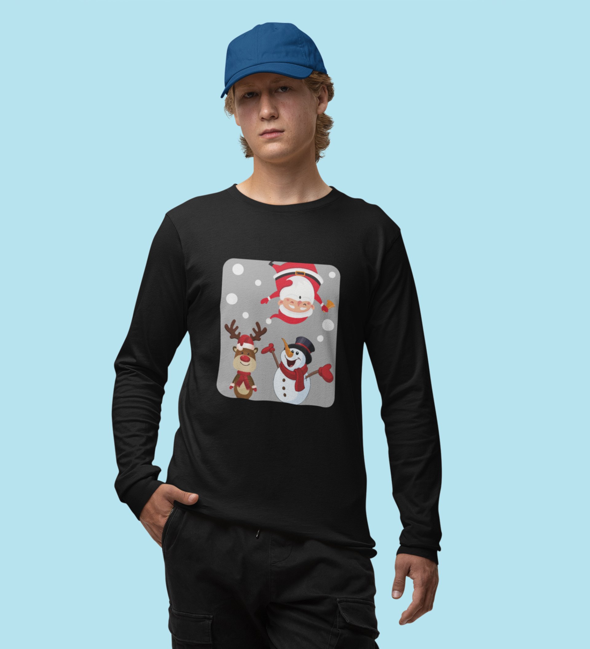 Santa And His Friends: Unwrap Joy withBlack Full Sleeve T-shirt- Durable Design for Festive Gifts For Boys Girls