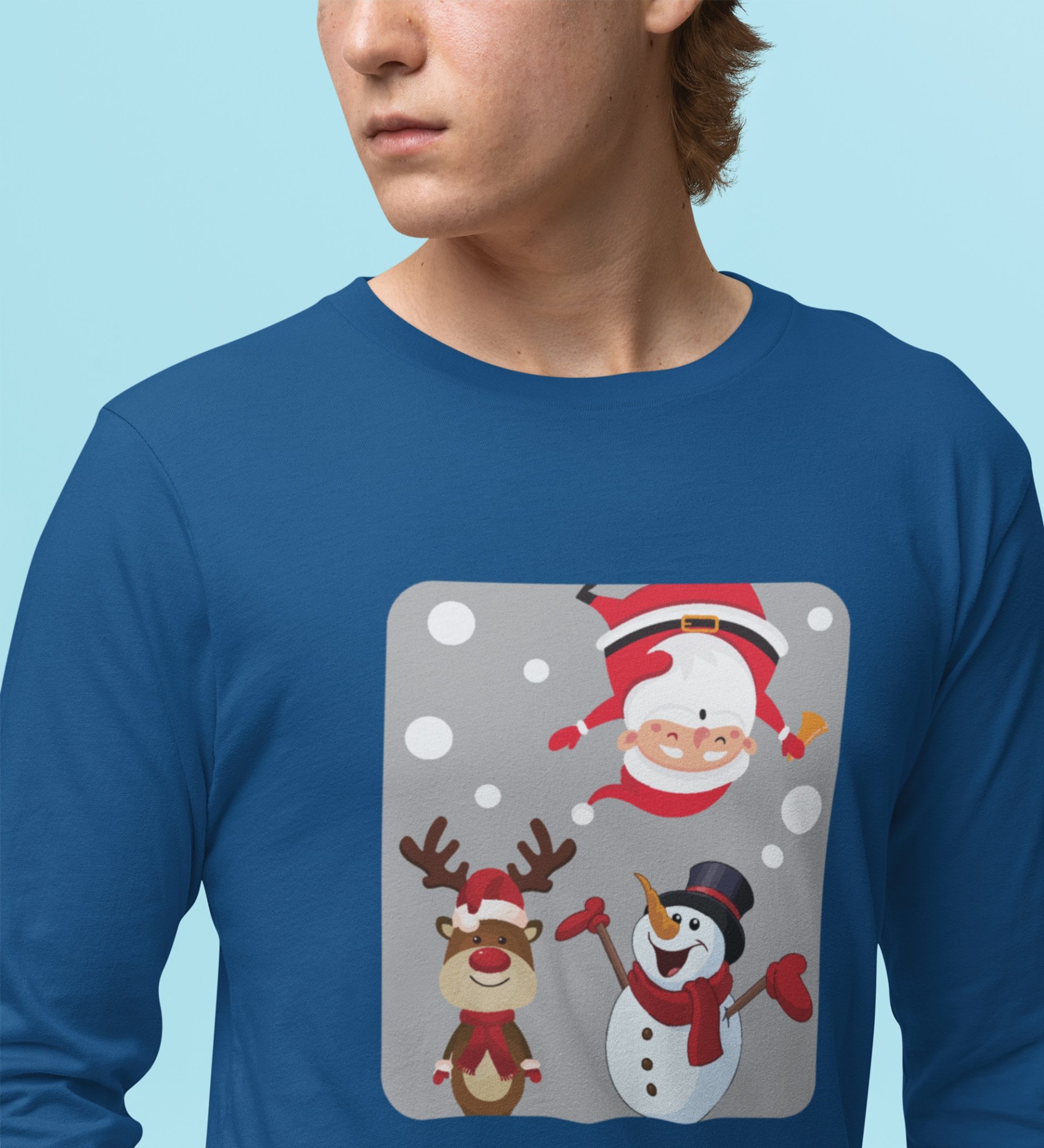 Santa And His Friends: Unwrap Joy withBlue Full Sleeve T-shirt- Durable Design for Festive Gifts For Boys Girls