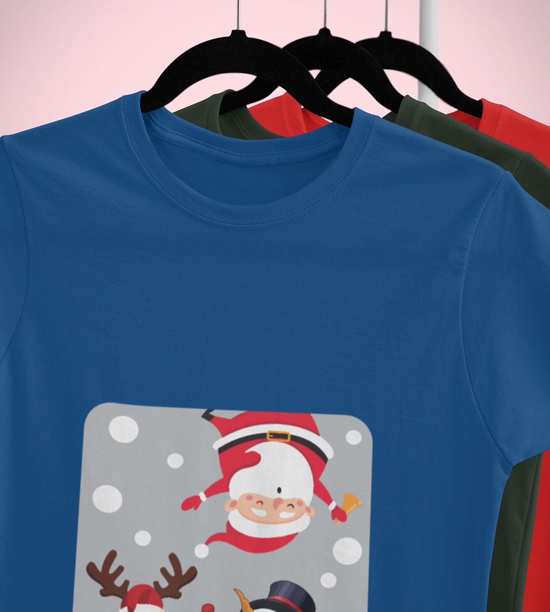 Santa And His Friends: Unwrap Joy with(Blue) T-shirt- Durable Printed for Festive Gifts For Boys Girls