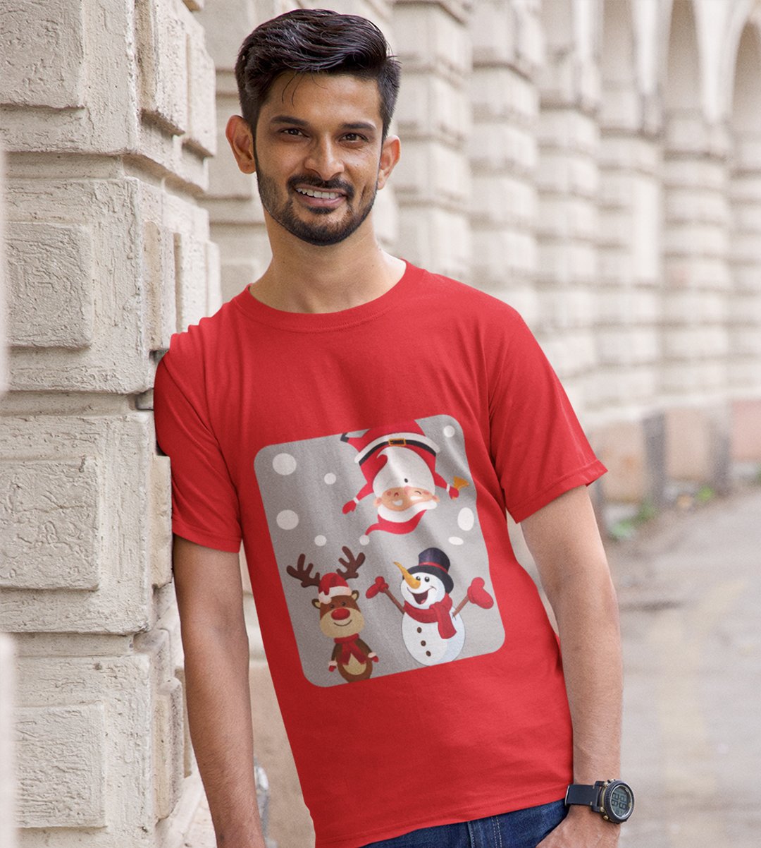 Santa And His Friends: Unwrap Joy with(Red) T-shirt- Durable Printed for Festive Gifts For Boys Girls