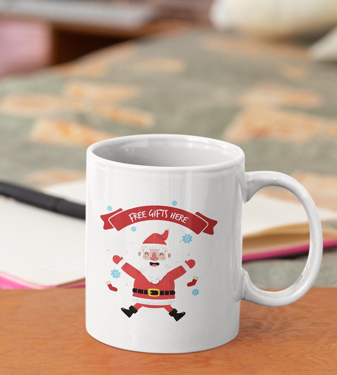 Santa Gift Coffe Mug Free Gift Here Theme Design Best Gifting Coffe Mug