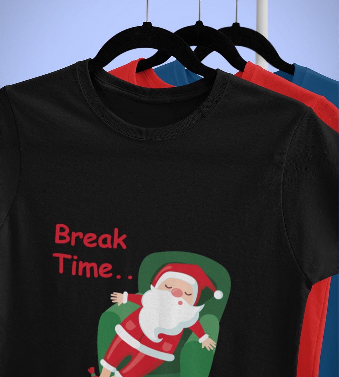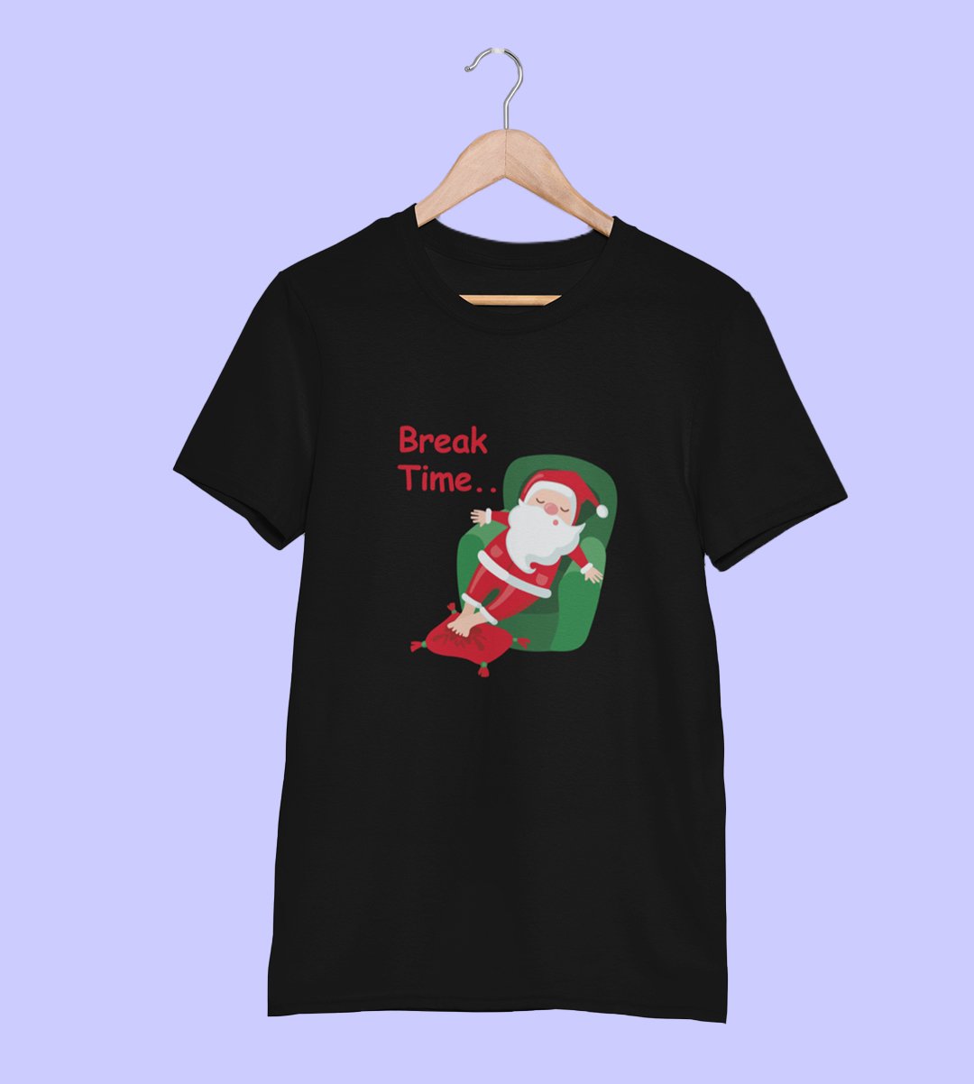 Santa Is On Break: Cute Printed T-shirte (Black) Best Gift For Boys Girls