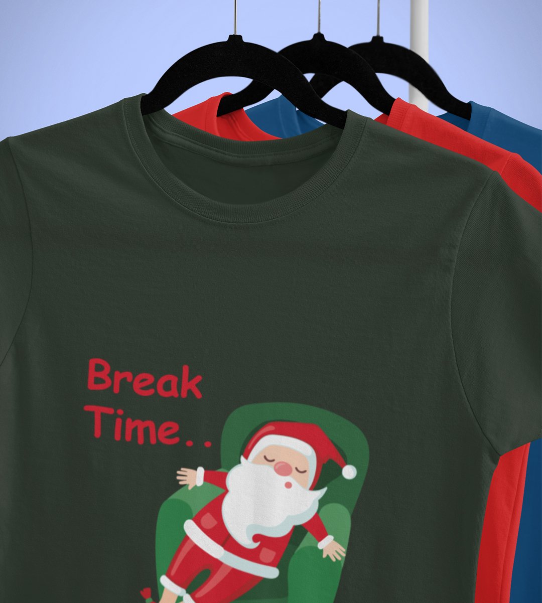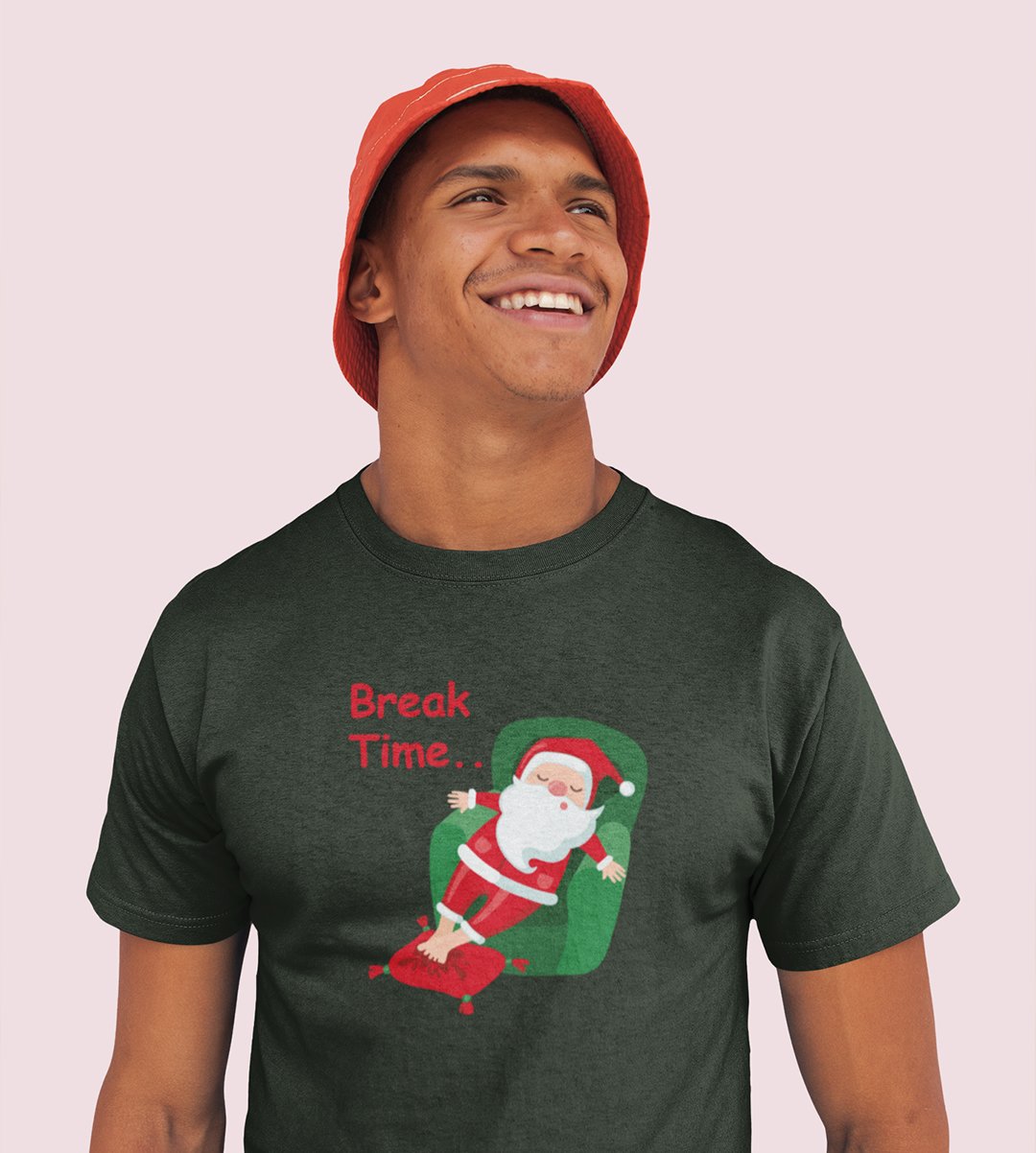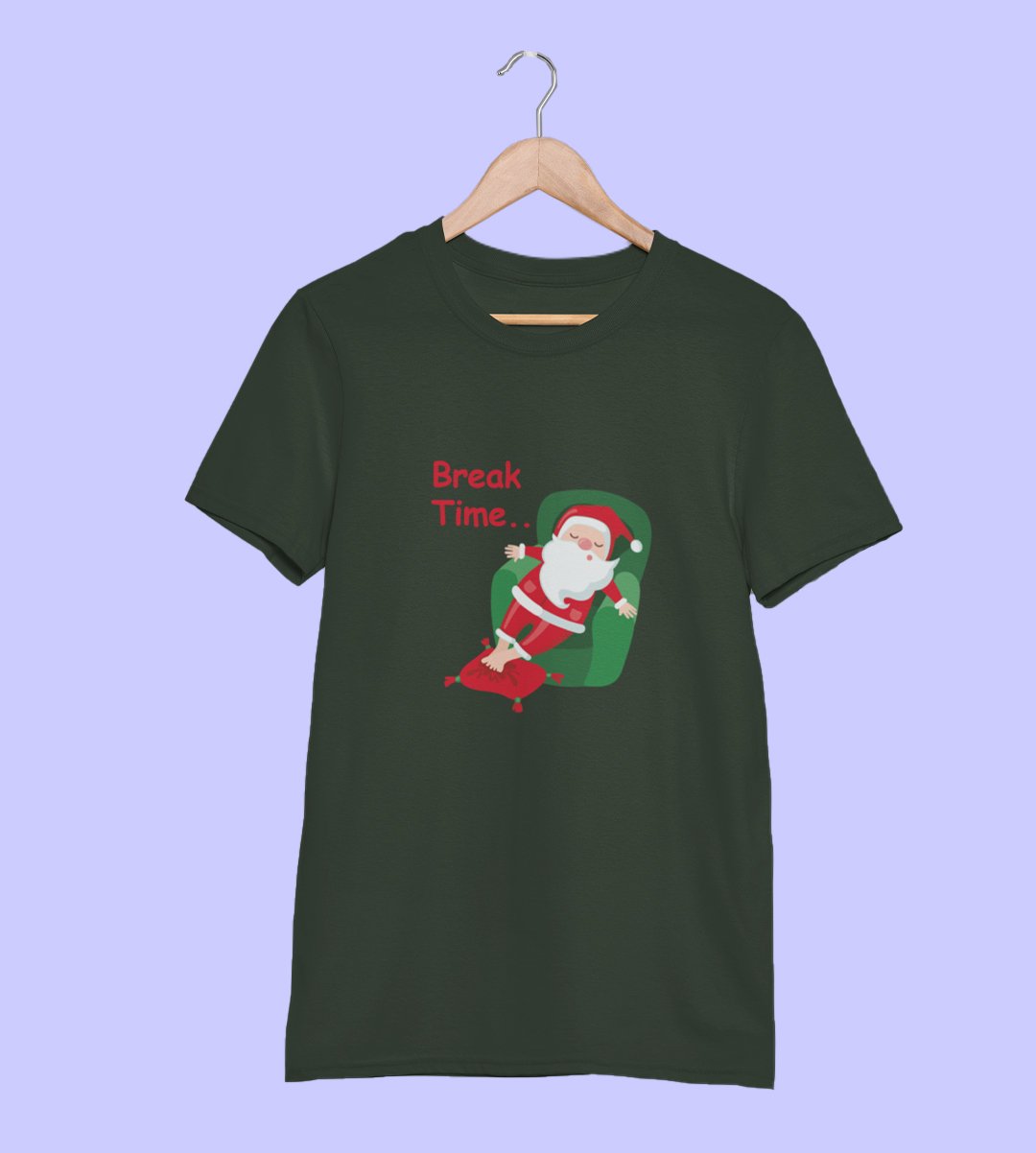 Santa Is On Break: Cute Printed T-shirte (Green) Best Gift For Boys Girls