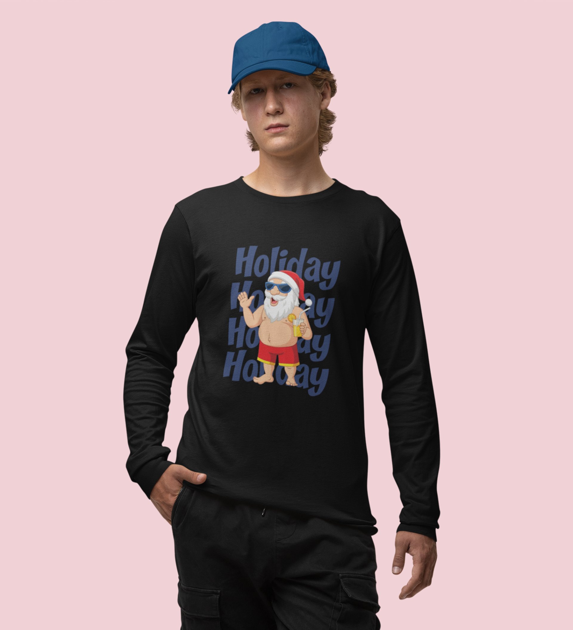 Santa On VactionFull Sleeve T-shirt: Exclusive Gift For Boys GirlsBlack Cool SantaFull Sleeve T-shirt, A Perfect Gift For Secret Santa