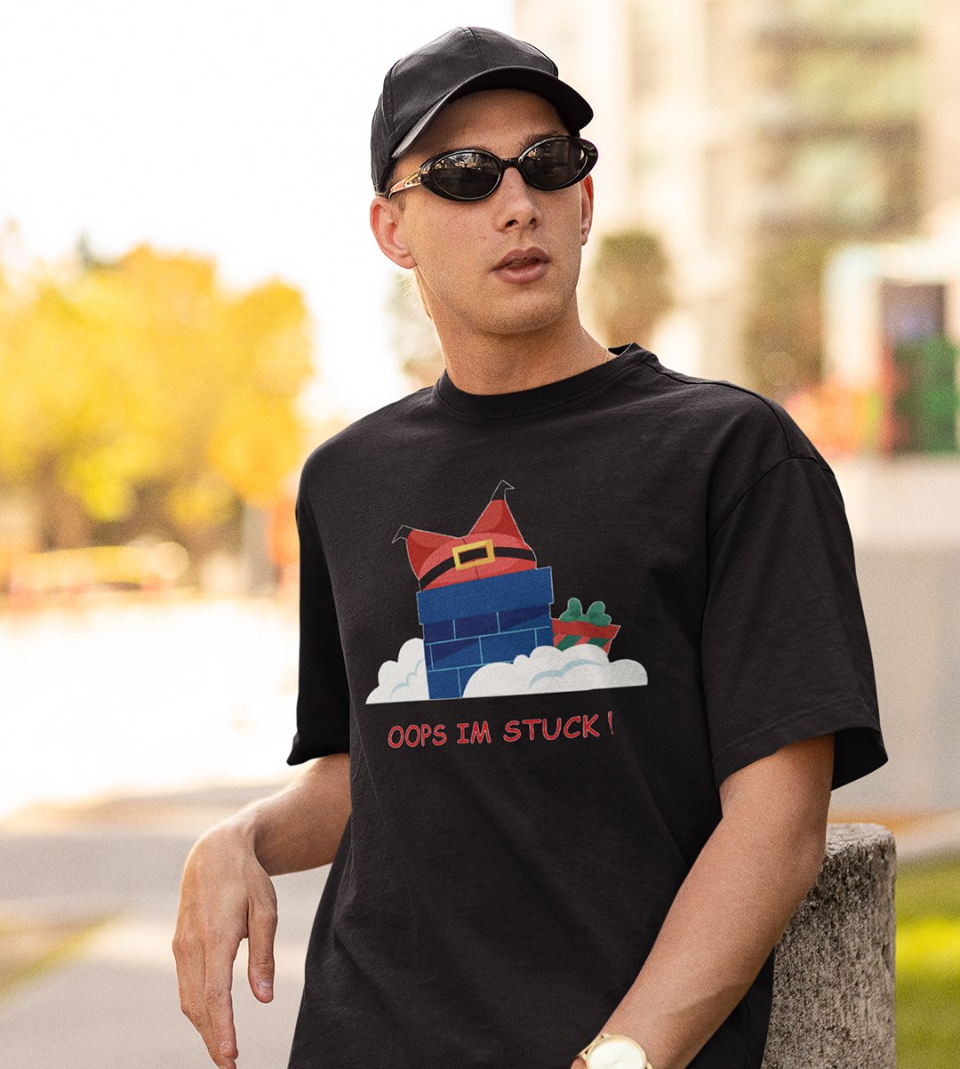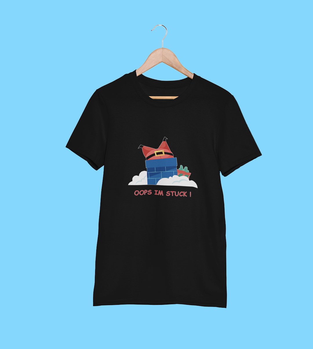 Santa Stucked In Chimeny : Best Printed T-shirt Botttle (Black) Christmas's Best Gift For Boys Girls