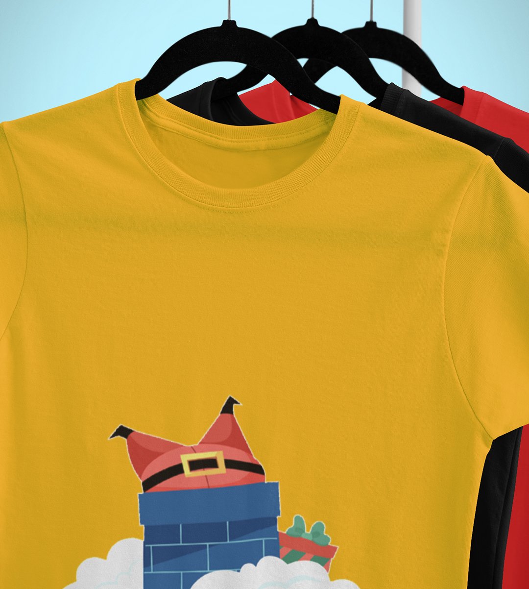 Santa Stucked In Chimeny : Best Printed T-shirt Botttle (Yellow) Christmas's Best Gift For Boys Girls