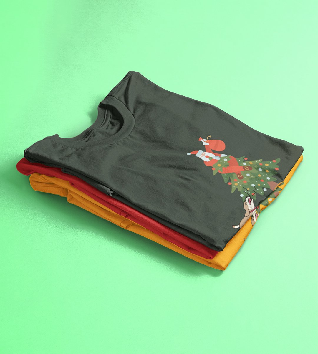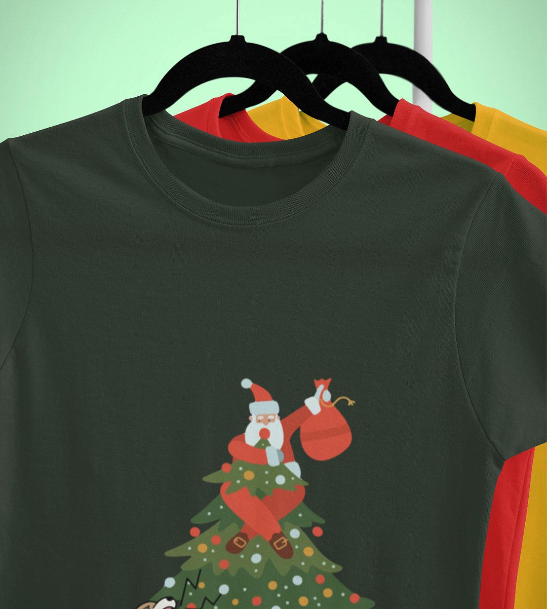 Santa's On Tree: Best Printed T-shirt (Green) Best Gift For Secret Santa