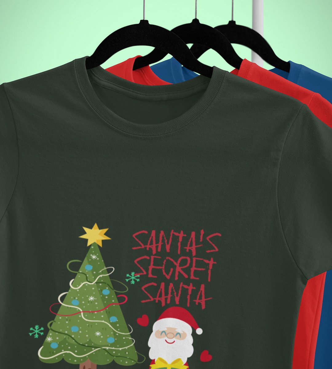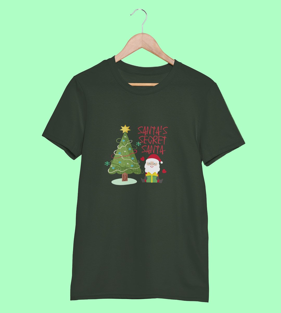 Santa's Secret Santa: Elegantly Printed T-shirt (Green) Perfect Gift For Secret Santa