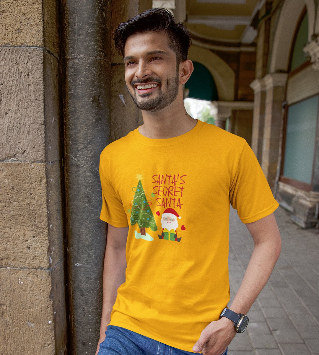 Santa's Secret Santa: Elegantly Printed T-shirt (Yellow) Perfect Gift For Secret Santa