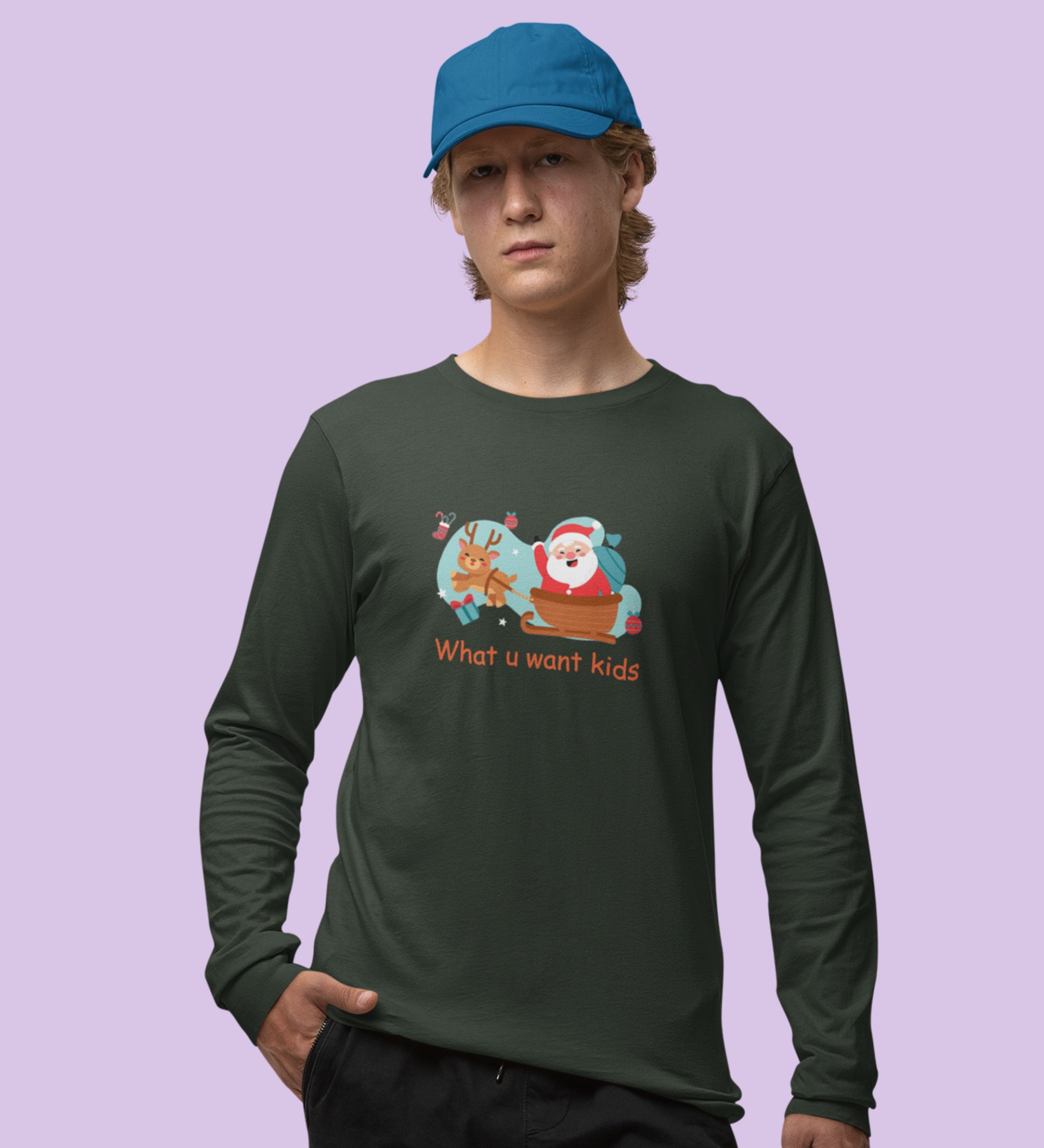 Santa's Sledge: Most Liked DesignedFull Sleeve T-shirt Green Best Gift For Boys Girls