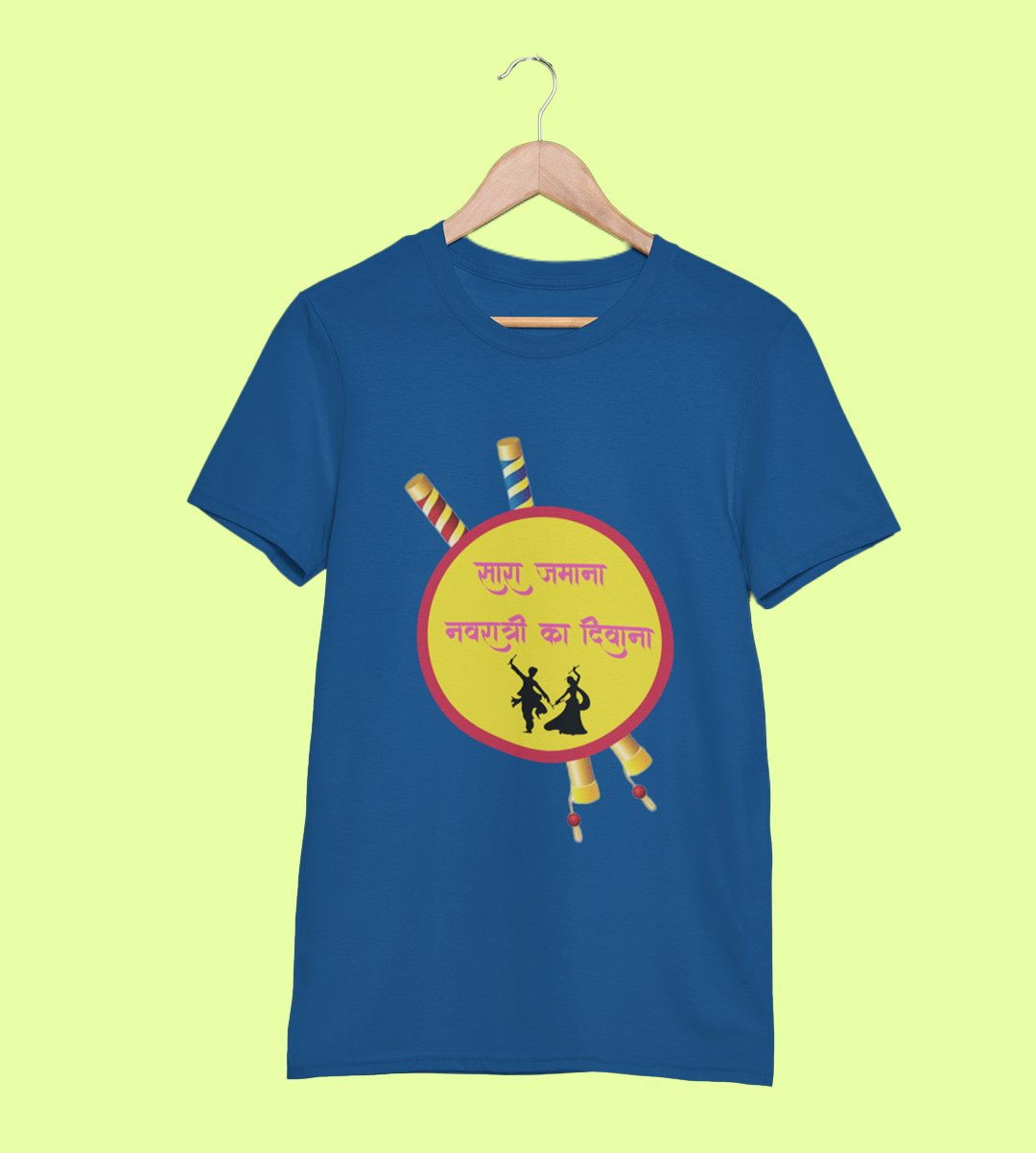 Sara Zamana printed unisex adults round neck cotton half-sleeve blue tshirt specially for Navratri festival/ Durga puja
