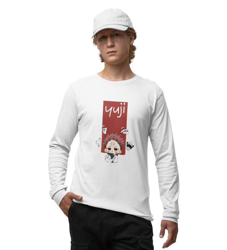 Sarcastic Itadori Cotton White Printed Full Sleeves Tshirt For Mens and Boys