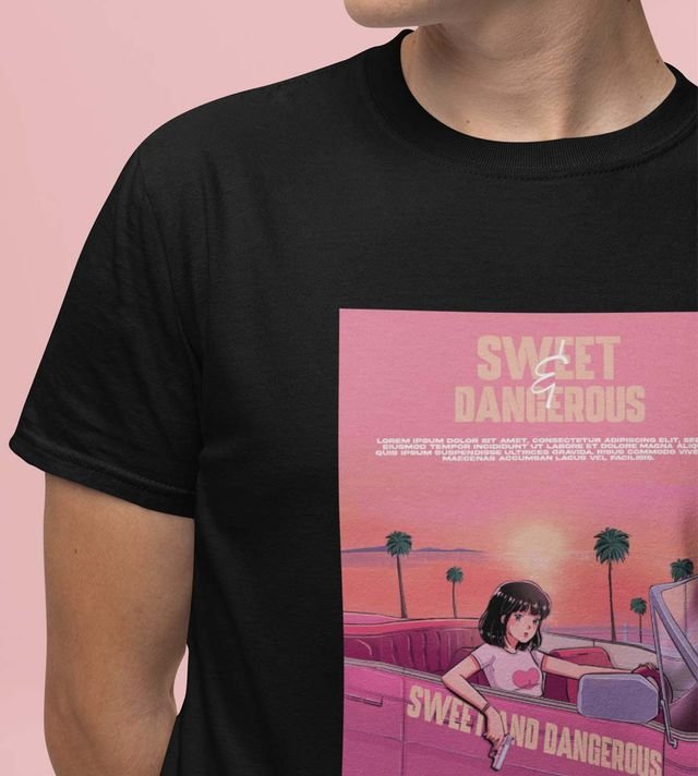 Sassy Sunset: Dangerous in Pink Graphic Printed Black T-Shirt