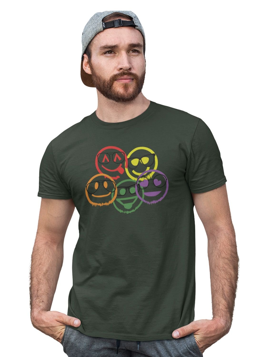 Scribbled Five different Emojis T-shirt (Green) - Clothes for Emoji Lovers -Foremost Gifting Material for Your Friends and Close Ones