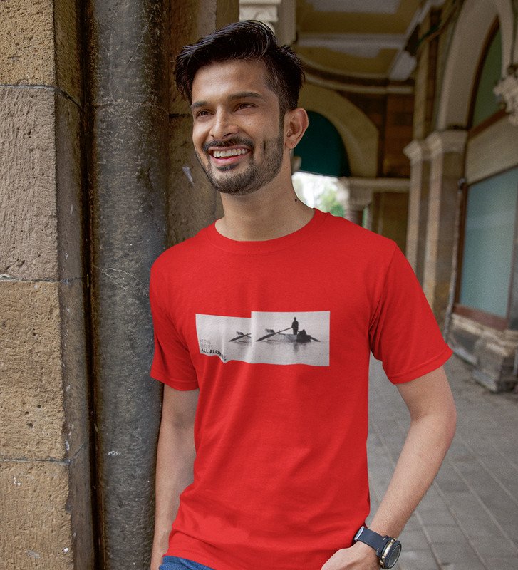 Self-Care, Fashion Fusion: Explore Red Front Printed Round Neck Tee - Men's Edition