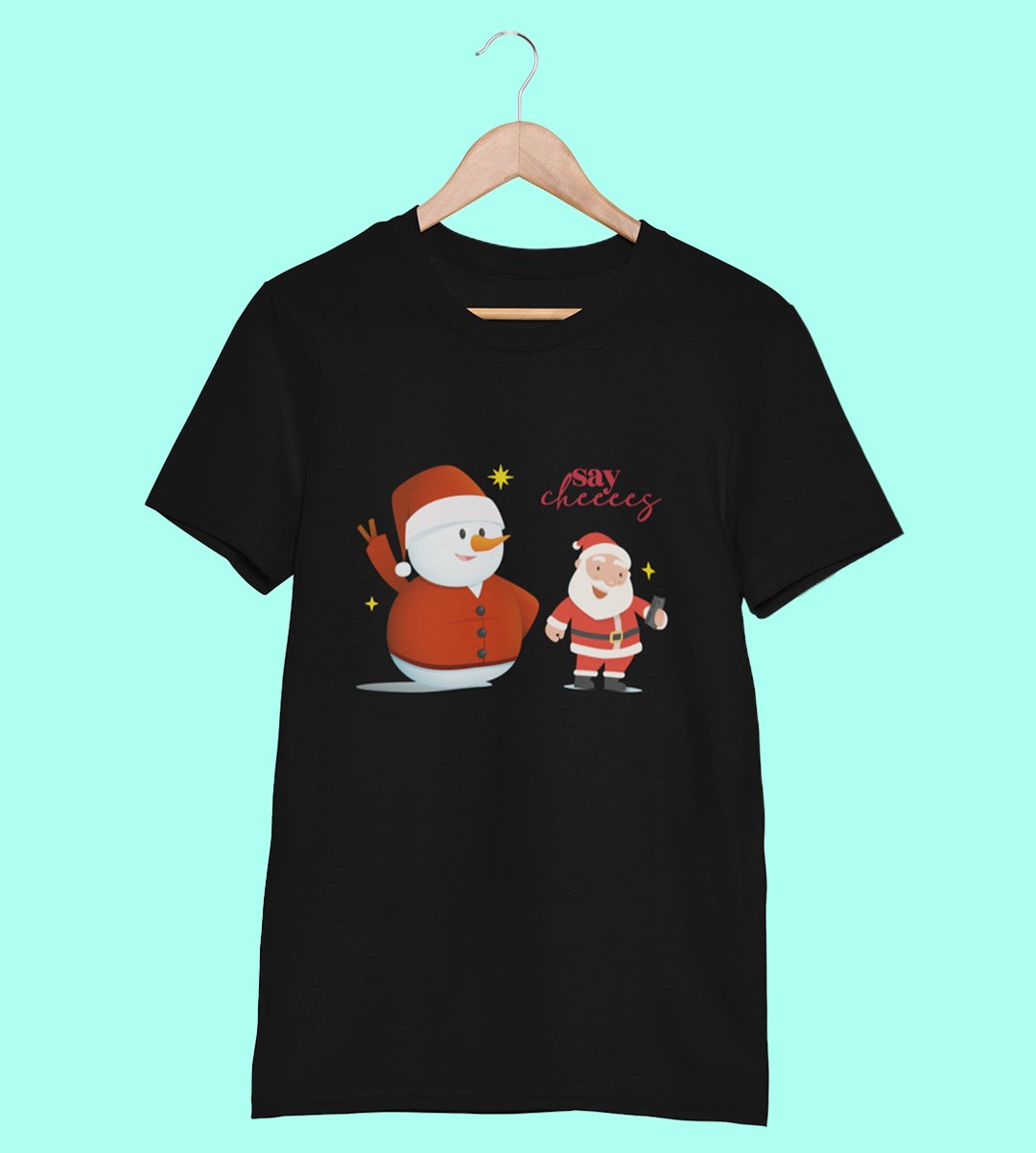 Selfie Santa: Cute Printed T-shirt (Black) Elegant Gift For Kids
