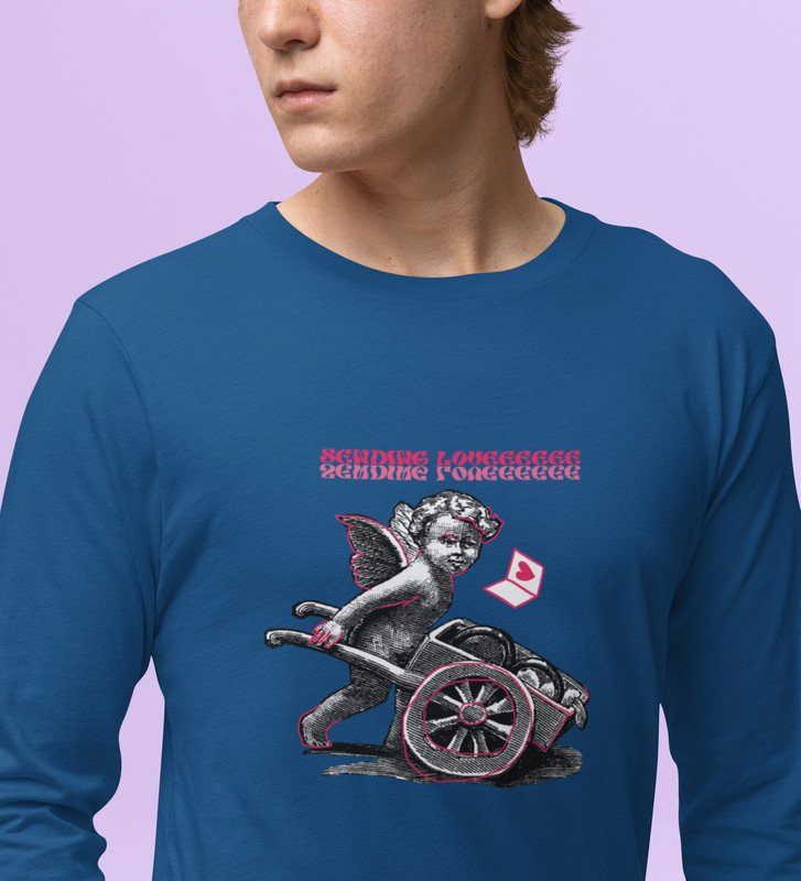 Sending Love: Printed (blue) Full Sleeve T-Shirt For Singles