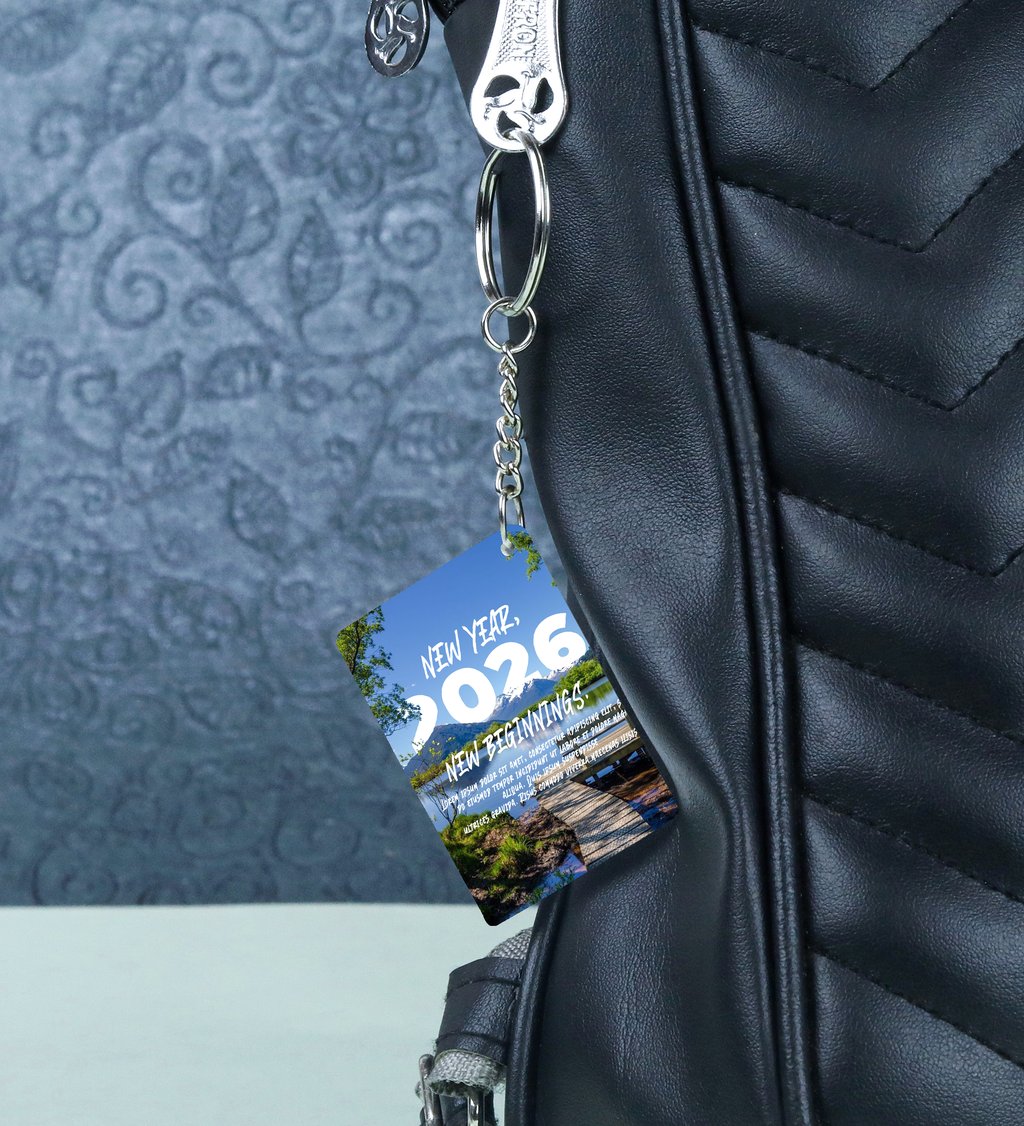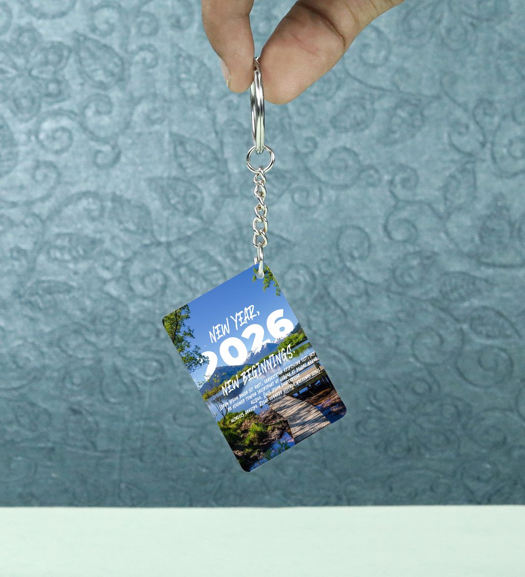 Serene Nature Landscape with Wooden Dock Symbolizing Fresh Starts and the Year 2026 Printed Keychain Pack of 2.