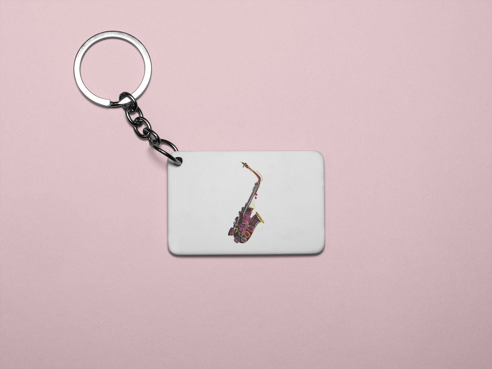 Saxophone -White -Designable Musicllnstrument Keychain ( Combo Set Of 2)