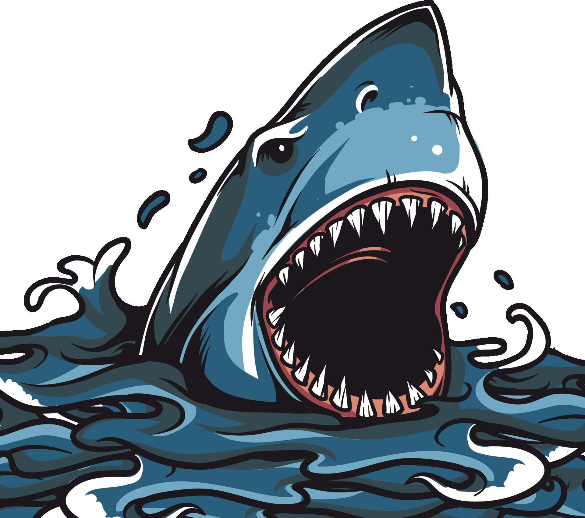 Shark attacking - White - printed T-shirts -Abstract Funny thoughtful creative illustrations - Men's stylish clothing - Cool tees for boys