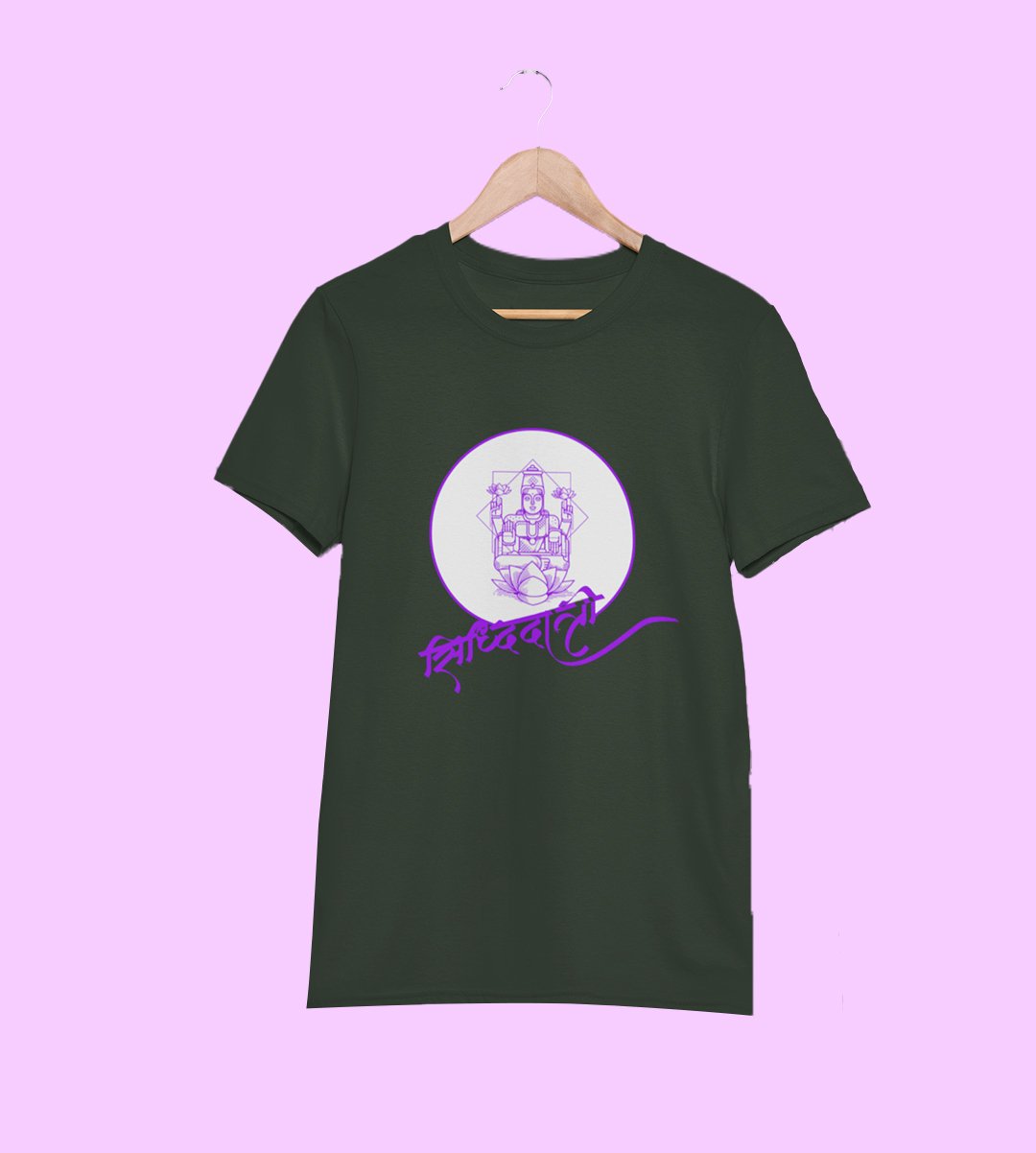 Shiddhidhatri text printed unisex adults round neck cotton half-sleeve green tshirt specially for Navratri festival/ Durga puja