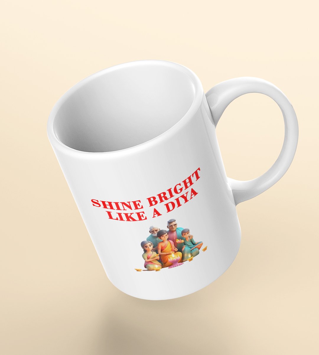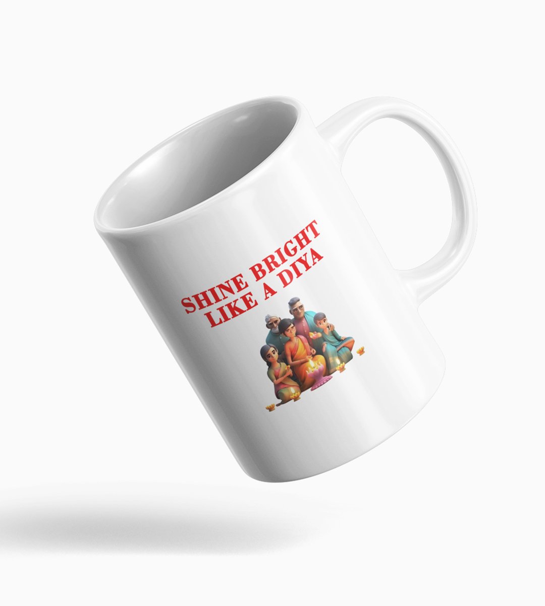 Embrace the luminous spirit of Diwali with our "Shine Bright Like A Diya" Coffee Mug. The heartwarming design captures the essence of family celebrating the festival, radiating the warmth and togetherness that defines Diwali. Sip your coffee and bask in the glow of Diwali with this heartwarming mug.