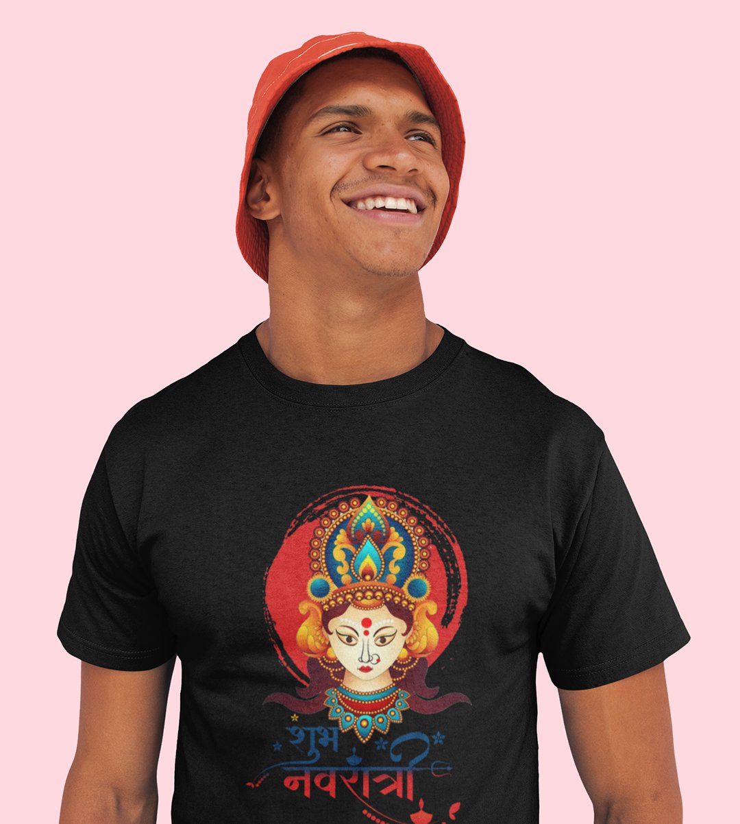 Shub Navratri (Maa durga face) printed unisex adults round neck cotton half-sleeve black tshirt specially for Navratri festival/ Durga puja