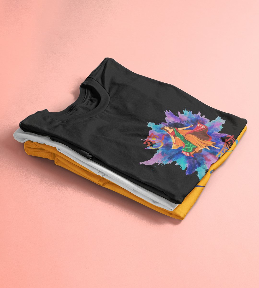 Navratri is a very auspicious festival for hindus. It takes place at the beginning of October and sometimes September. Enjoy the 9 days of festivities with full zeal and make yourself submerged in the love of Maa Durga. Navratri is also known as Durga Puja. And with this Tees, you can shine like a star during this festive season with our navratri themed cotton half sleeved Tshirts. You can pair our t-shirts with trousers and denim of your choice and make it a weekday smart casual or weekend wear. This is durable. This tshirt is smooth and soft which makes you comfortable to wear during all seasons. The printing in it is durable and odourless. It has five sizes, S,M,L,XL,XXL. The Tshirt colour is intact even after repeated washes. It can be kept in your wardrobe and hangers. Please avoid washing mashine to clean this Tee, it may affect the print. Hand wash only. We have brought you many navratri related designs printed on our different colour Tshirts to choose from. Grab it now.