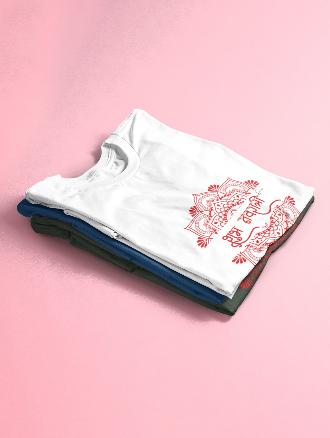 Navratri is a very auspicious festival for hindus. It takes place at the beginning of October and sometimes September. Enjoy the 9 days of festivities with full zeal and make yourself submerged in the love of Maa Durga. Navratri is also known as Durga Puja. And with this Tees, you can shine like a star during this festive season with our navratri themed cotton half sleeved Tshirts. You can pair our t-shirts with trousers and denim of your choice and make it a weekday smart casual or weekend wear. This is durable. This tshirt is smooth and soft which makes you comfortable to wear during all seasons. The printing in it is durable and odourless. It has five sizes, S,M,L,XL,XXL. The Tshirt colour is intact even after repeated washes. It can be kept in your wardrobe and hangers. Please avoid washing mashine to clean this Tee, it may affect the print. Hand wash only. We have brought you many navratri related designs printed on our different colour Tshirts to choose from. Grab it now.