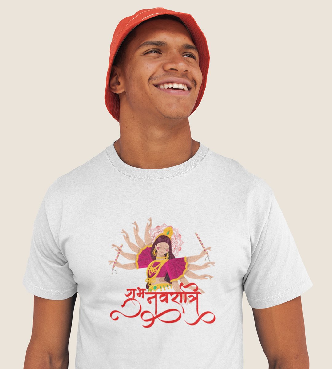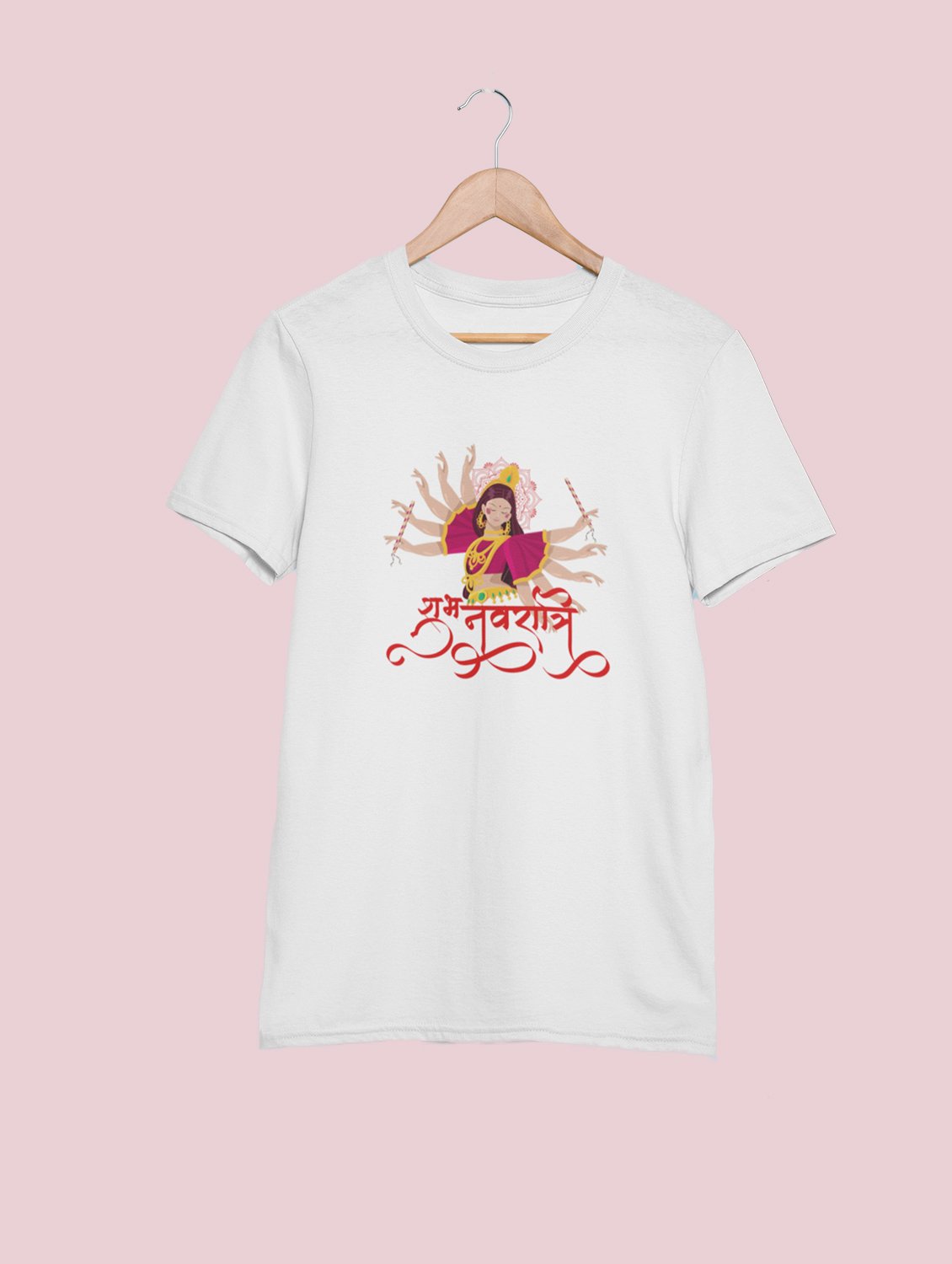 Navratri is a very auspicious festival for hindus. It takes place at the beginning of October and sometimes September. Enjoy the 9 days of festivities with full zeal and make yourself submerged in the love of Maa Durga. Navratri is also known as Durga Puja. And with this Tees, you can shine like a star during this festive season with our navratri themed cotton half sleeved Tshirts. You can pair our t-shirts with trousers and denim of your choice and make it a weekday smart casual or weekend wear. This is durable. This tshirt is smooth and soft which makes you comfortable to wear during all seasons. The printing in it is durable and odourless. It has five sizes, S,M,L,XL,XXL. The Tshirt colour is intact even after repeated washes. It can be kept in your wardrobe and hangers. Please avoid washing mashine to clean this Tee, it may affect the print. Hand wash only. We have brought you many navratri related designs printed on our different colour Tshirts to choose from. Grab it now.